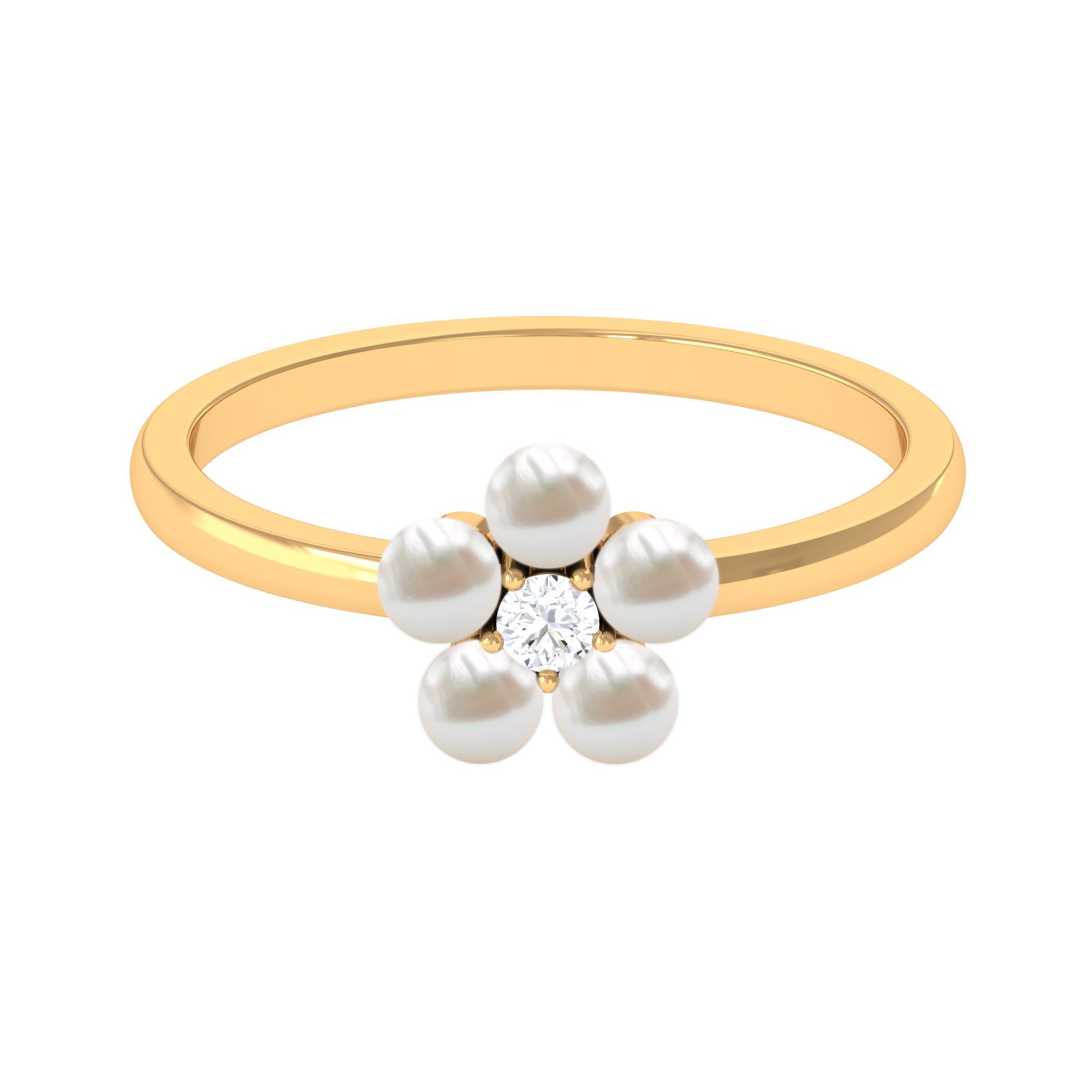 Freshwater Pearl Floral Promise Ring with Moissanite Stone