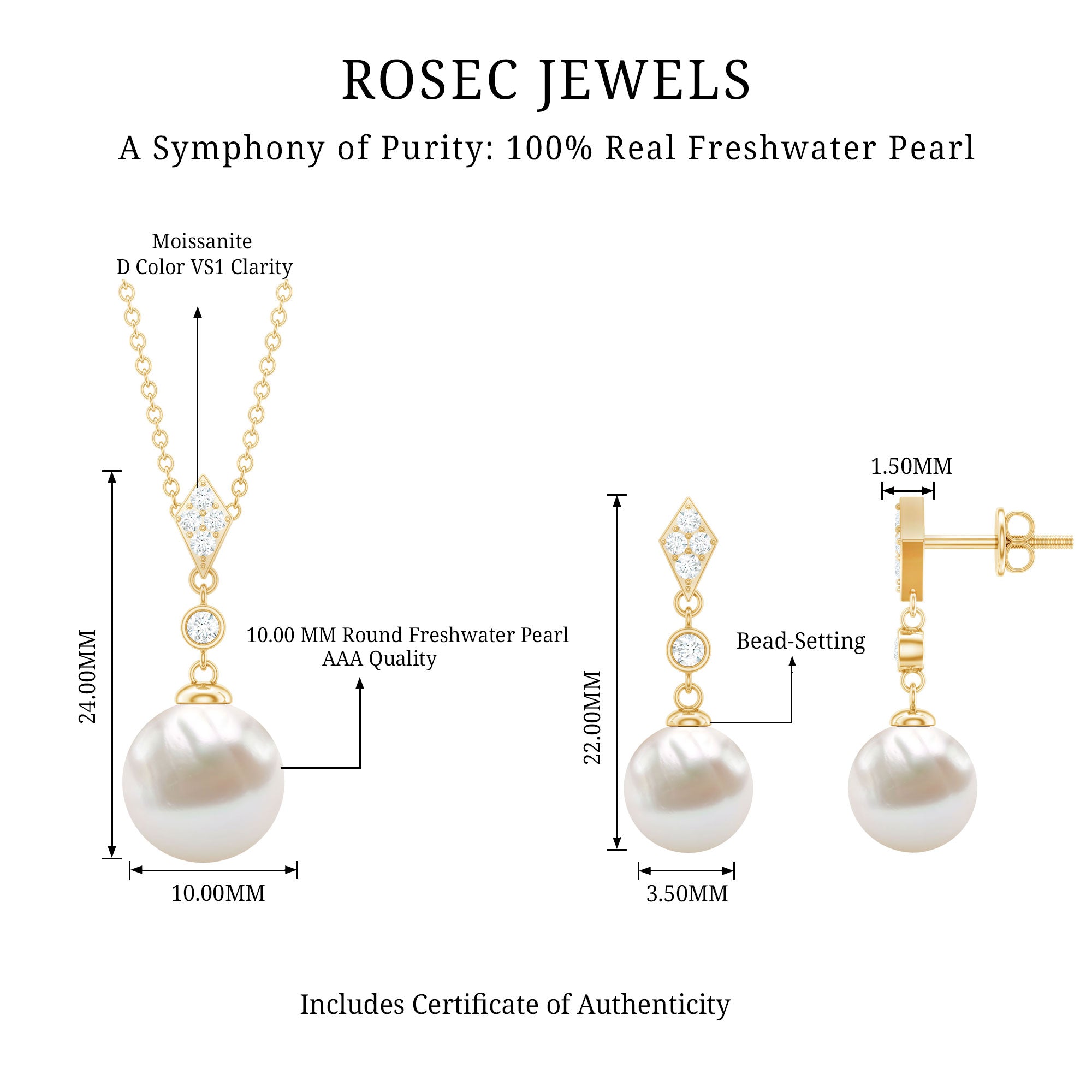 Freshwater Pearl Simple Dangle Drop Pendant and Earrings Set with Diamond