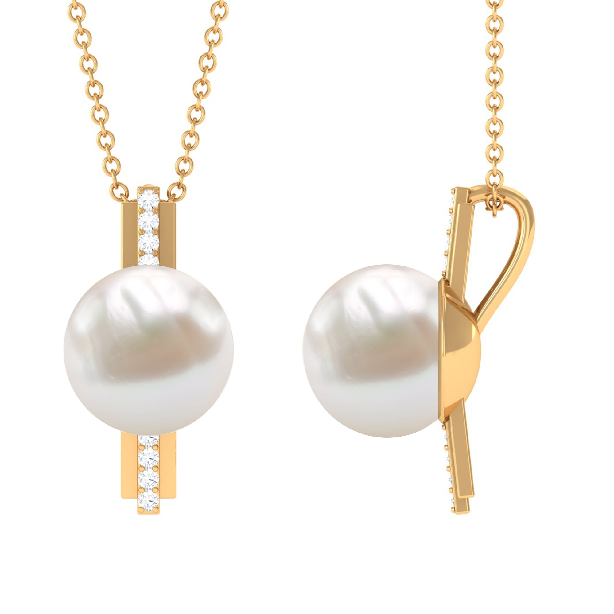 Freshwater Pearl Solitaire and Diamond Contemporary Pendant