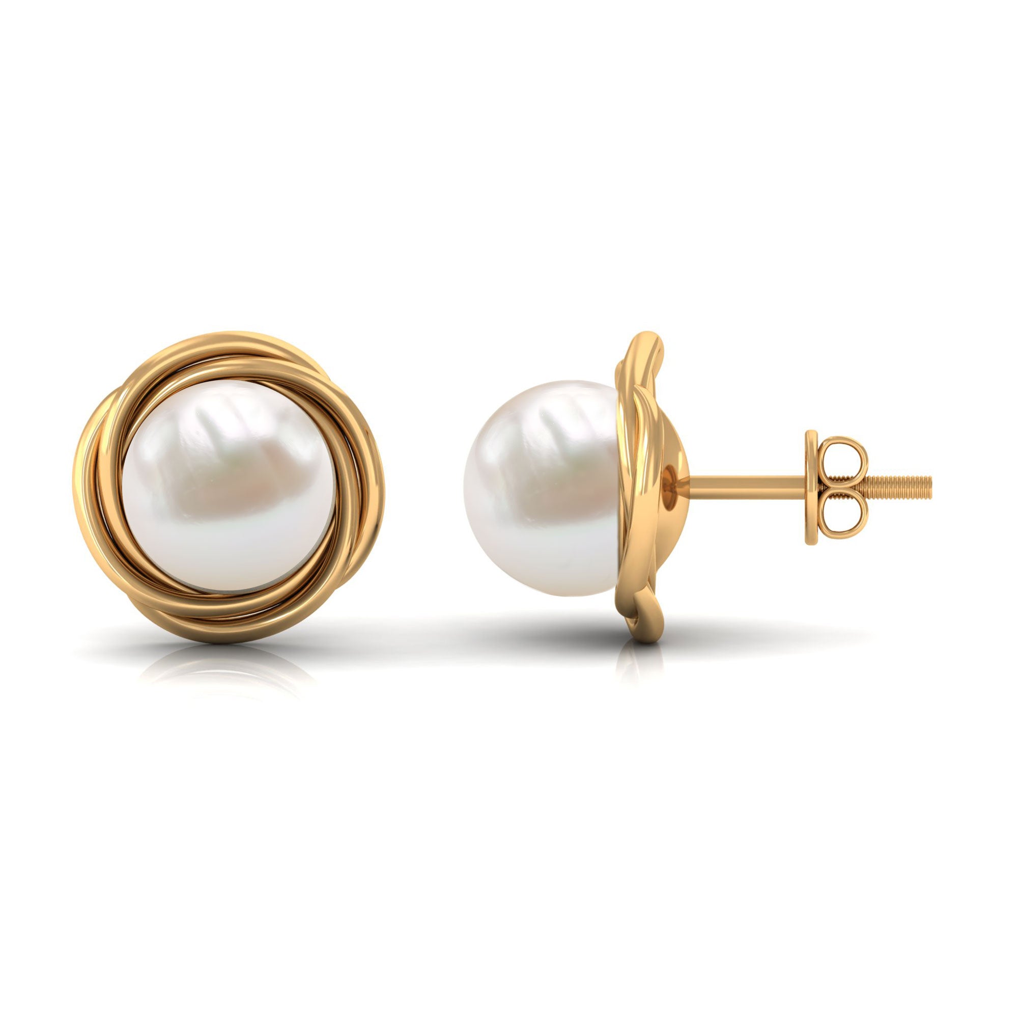 Freshwater Pearl Solitaire and Gold Swirl Stud Earrings