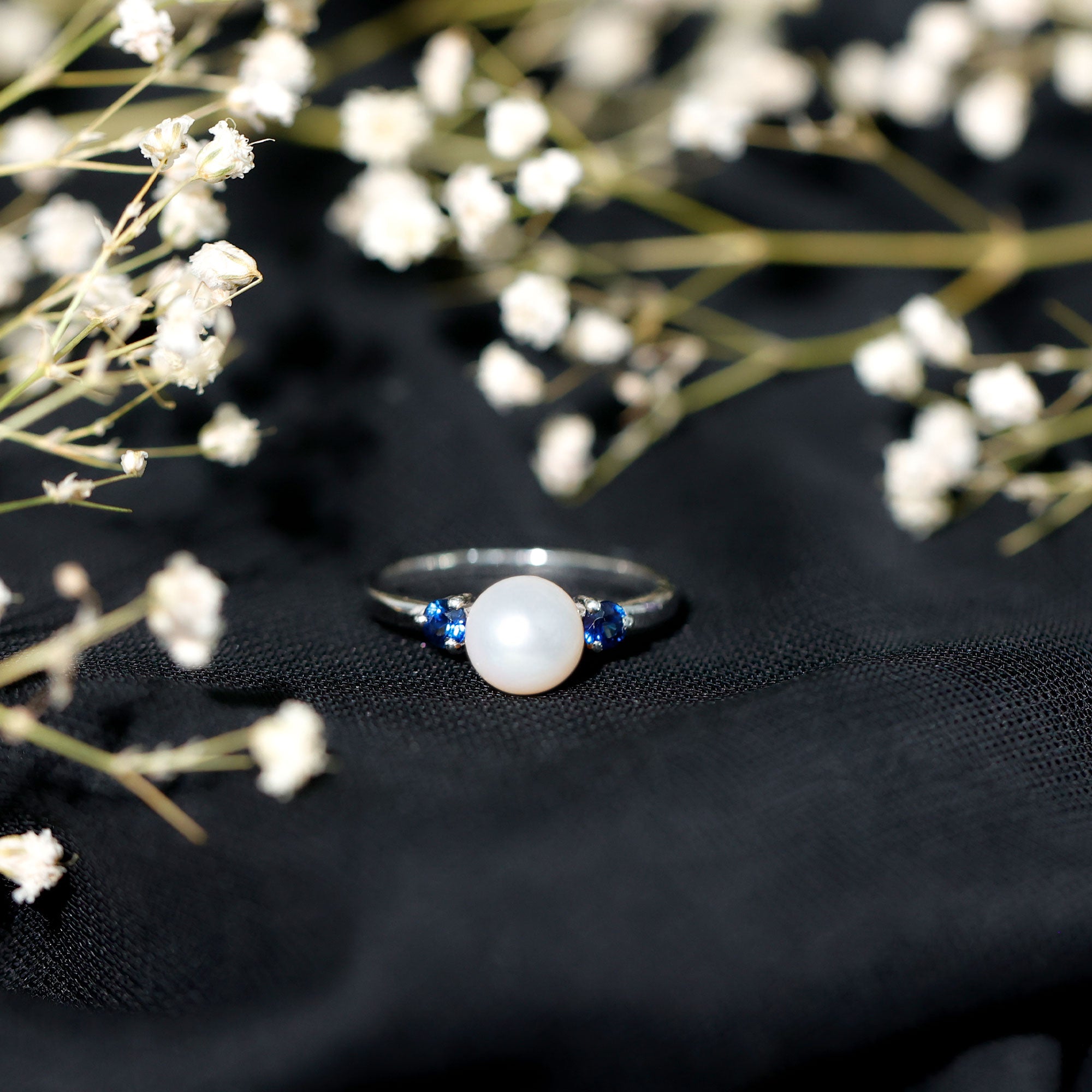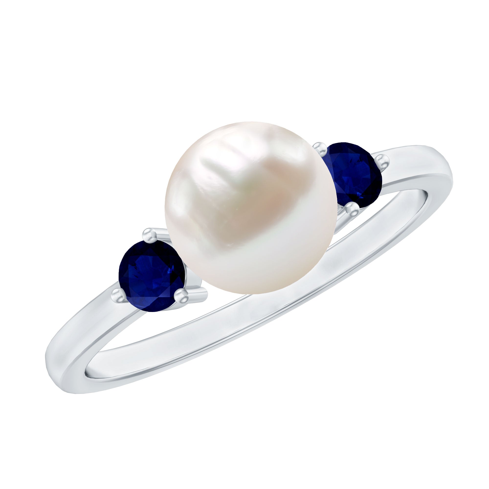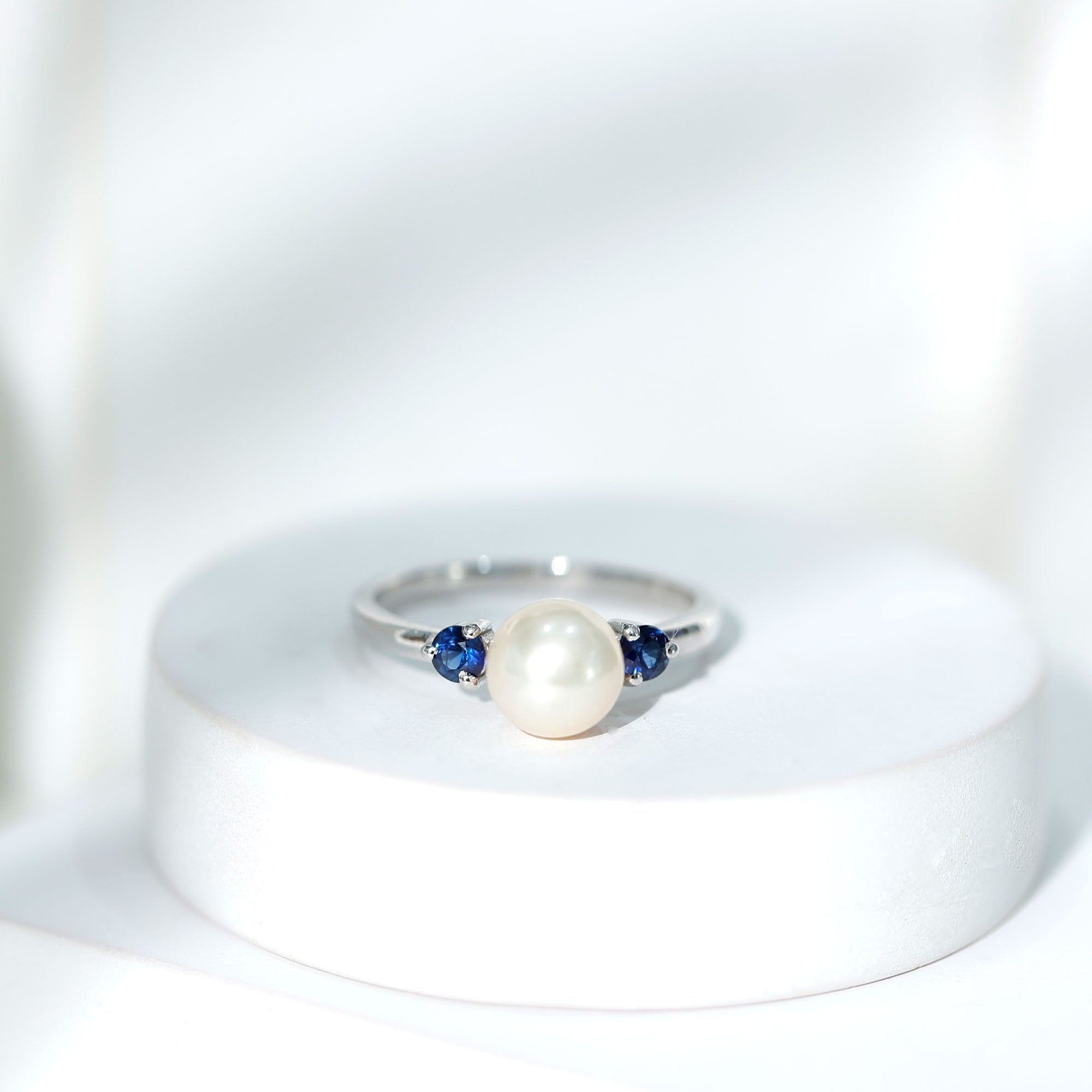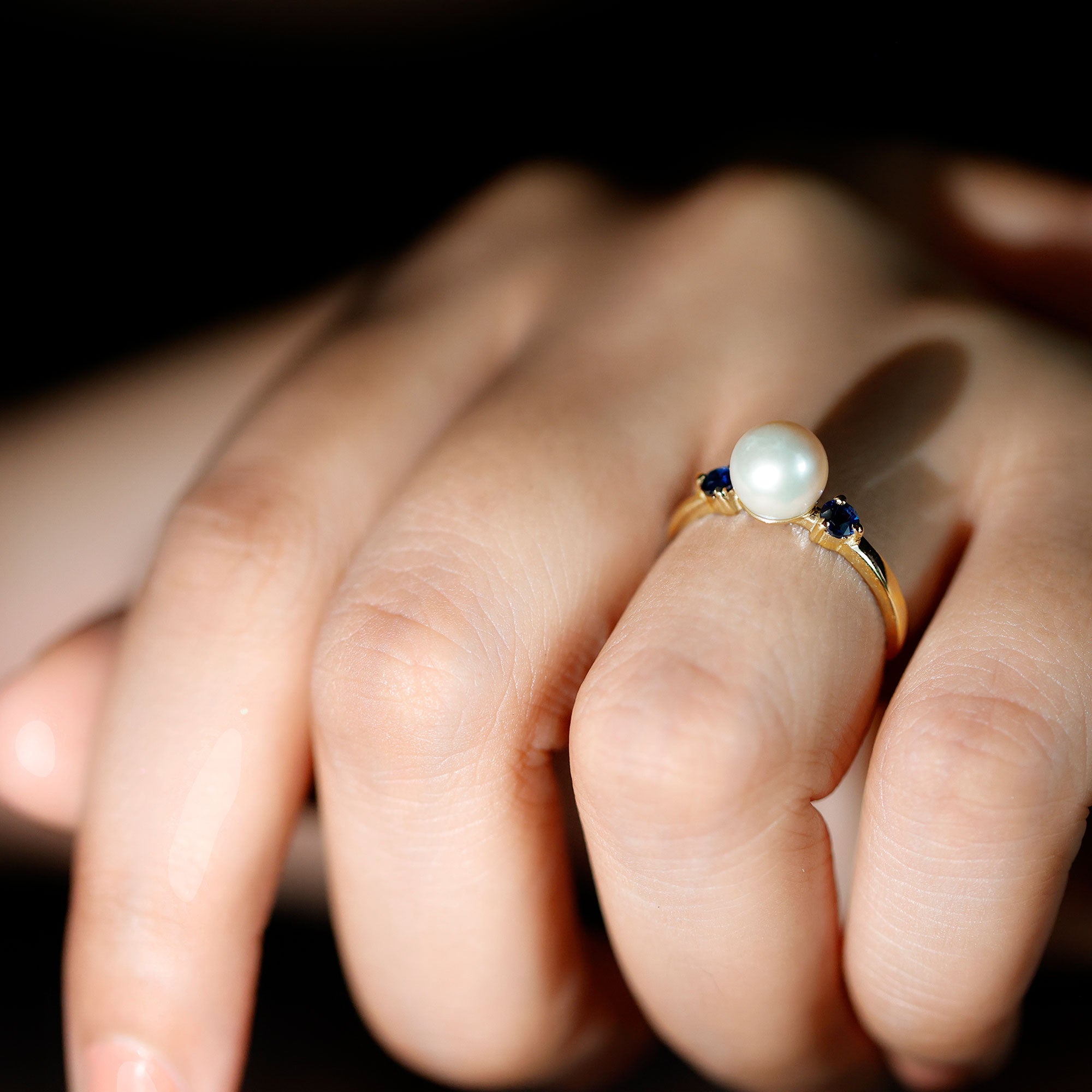 Freshwater Pearl Solitaire Engagement Ring with Blue Sapphire
