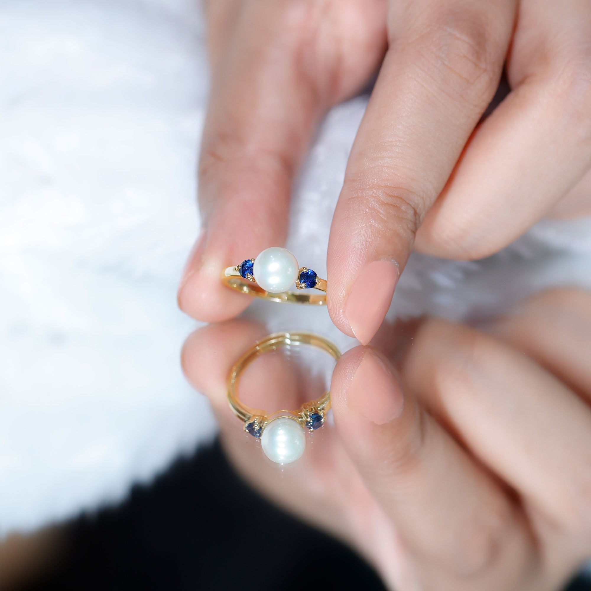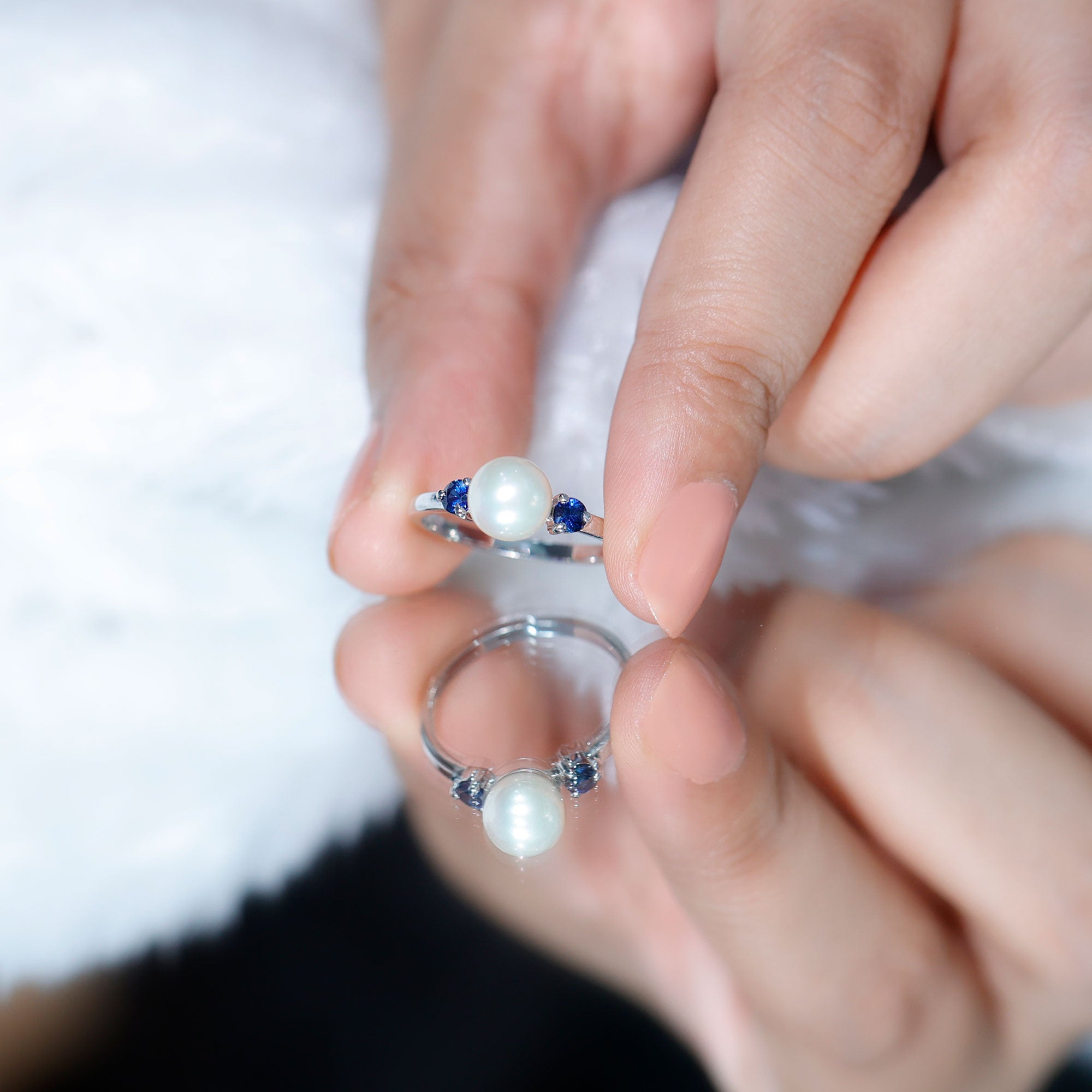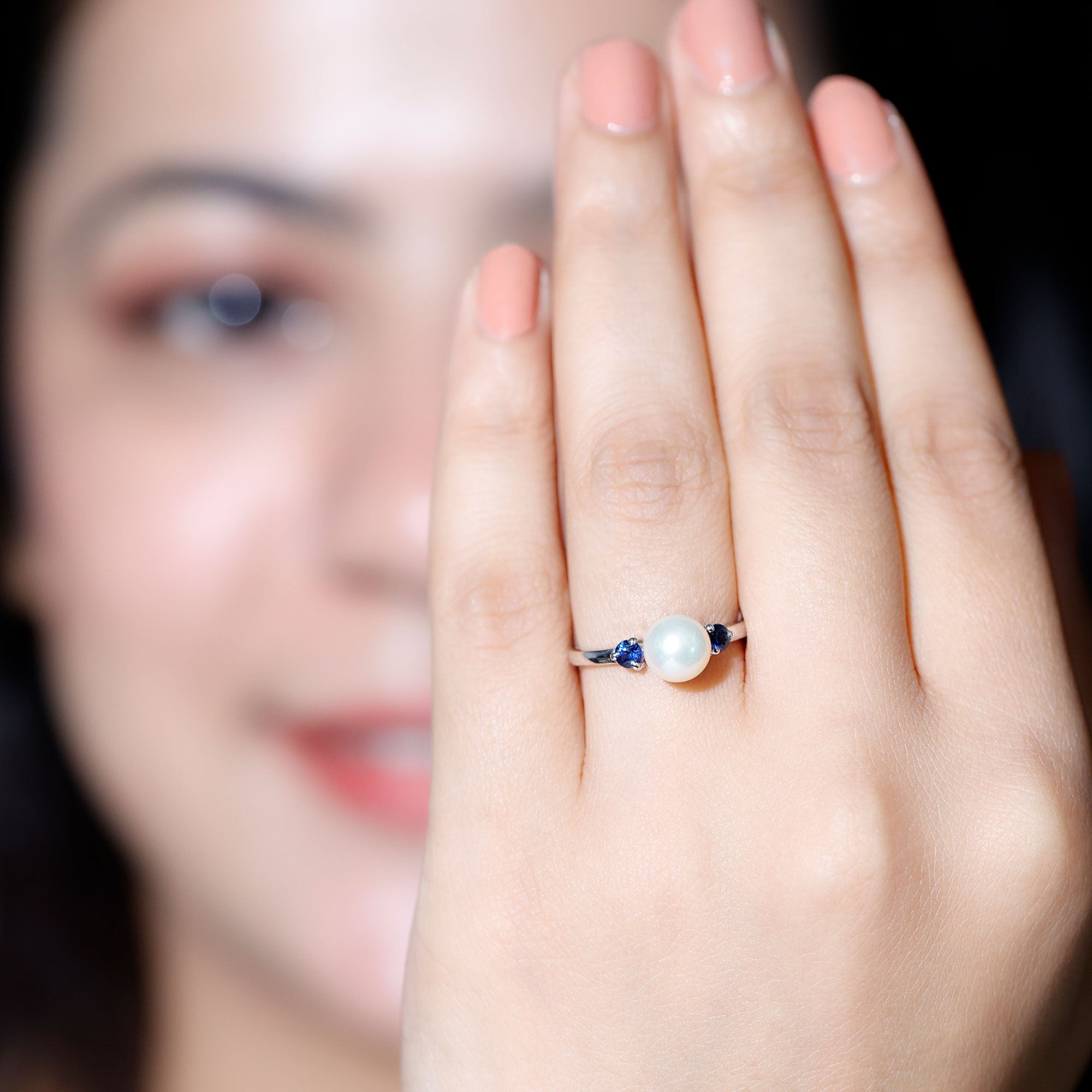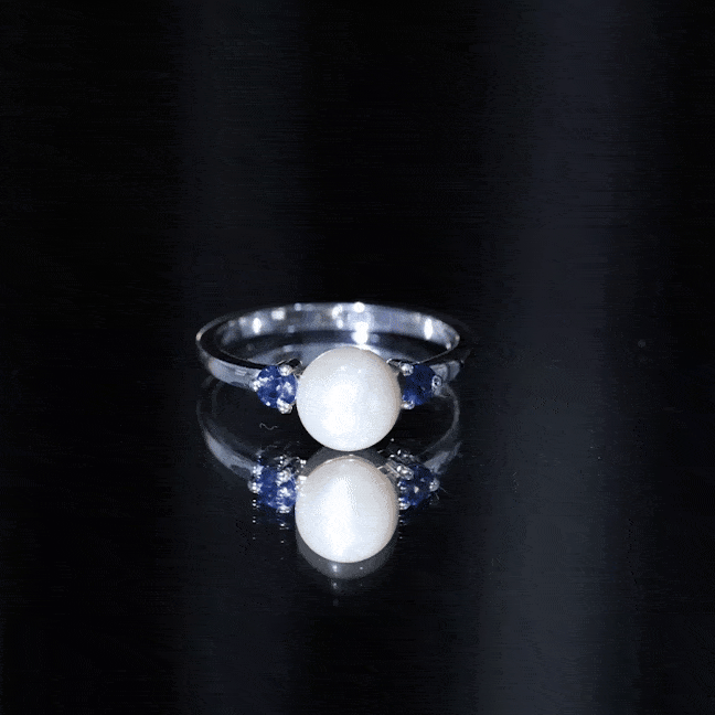 Freshwater Pearl Solitaire Engagement Ring with Blue Sapphire