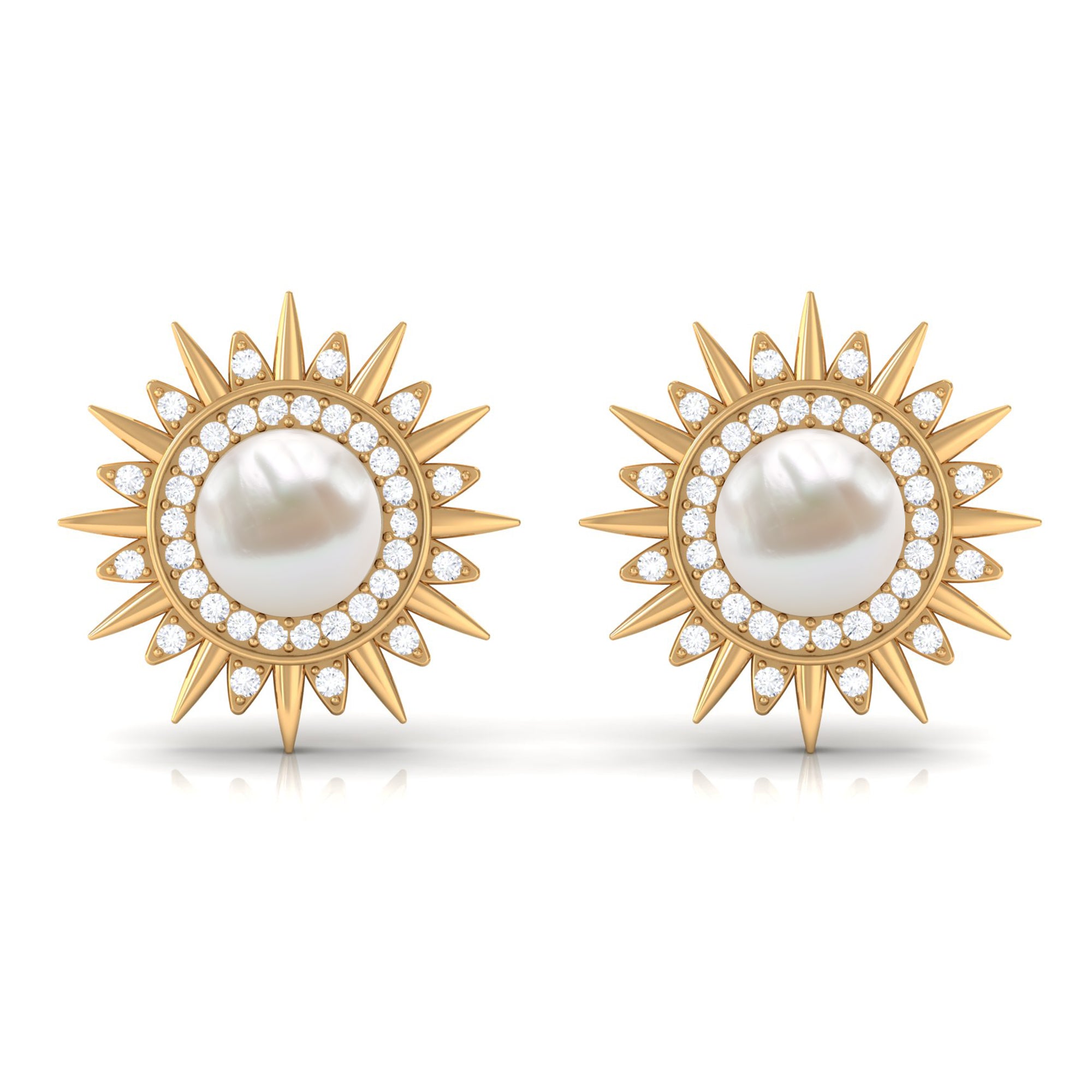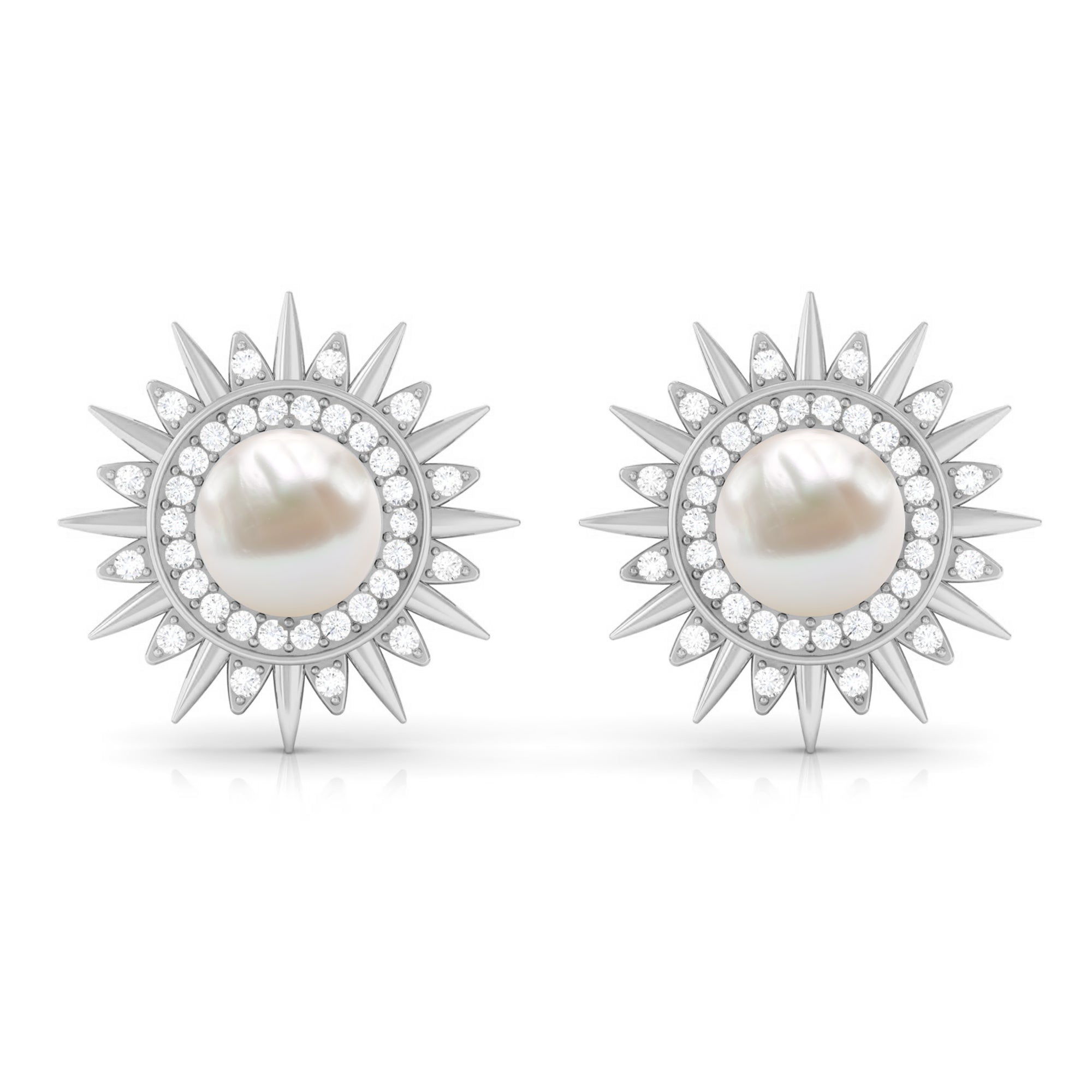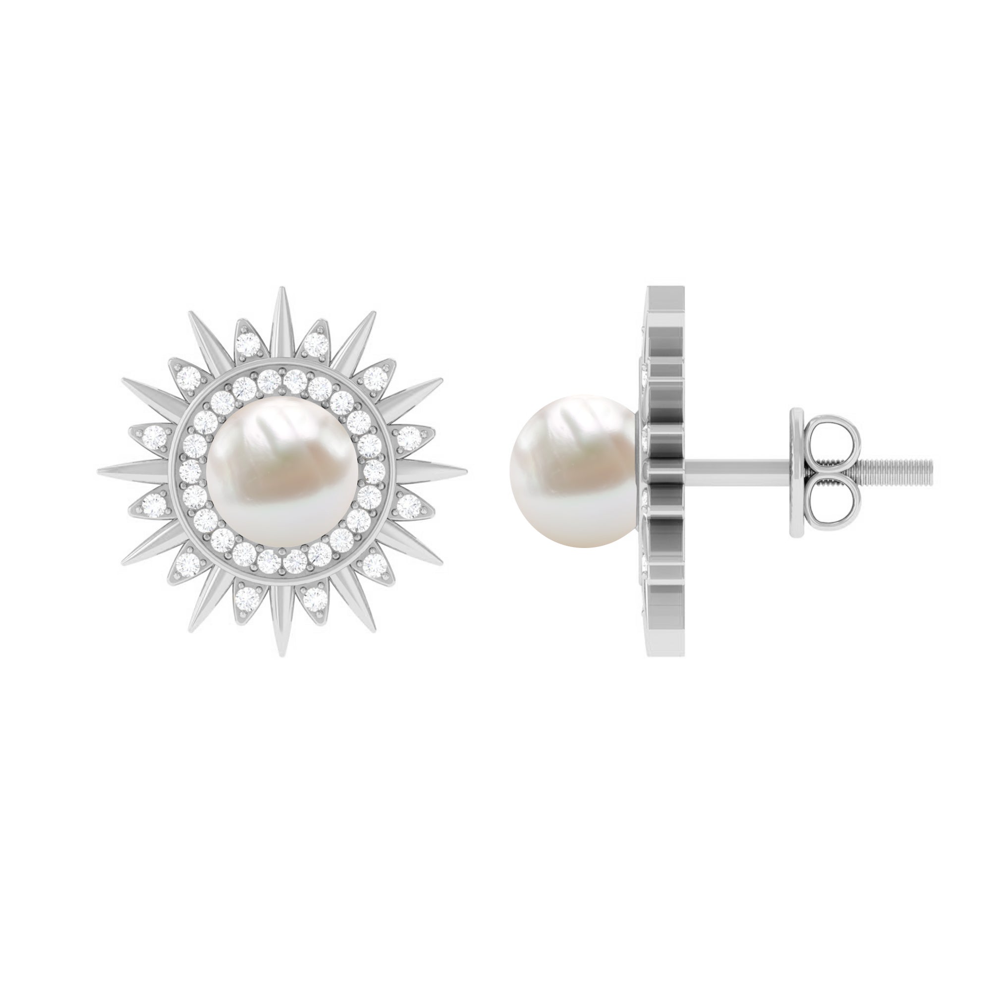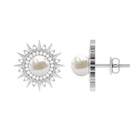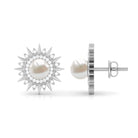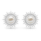 Freshwater Pearl Sunburst Stud Earrings with Diamond Halo