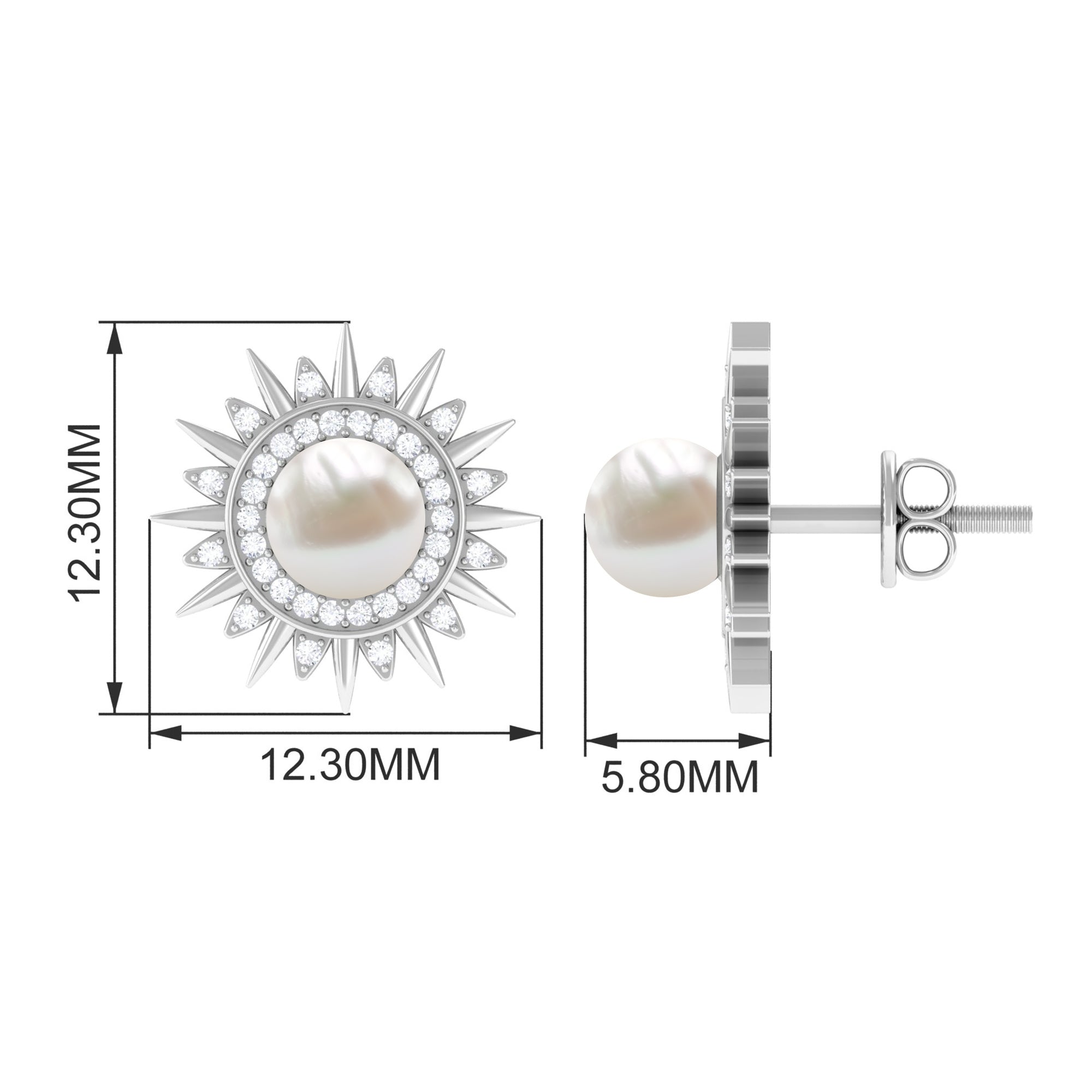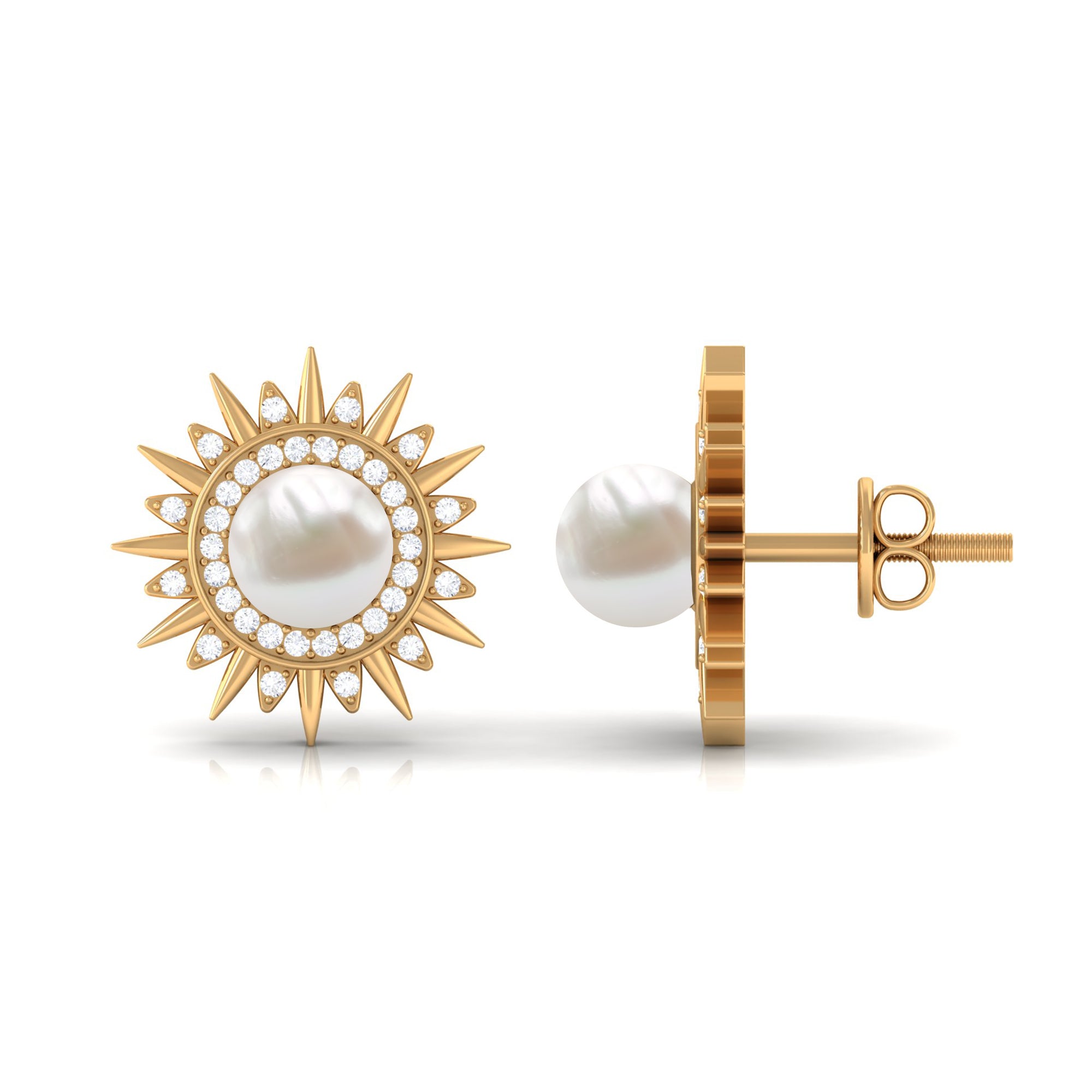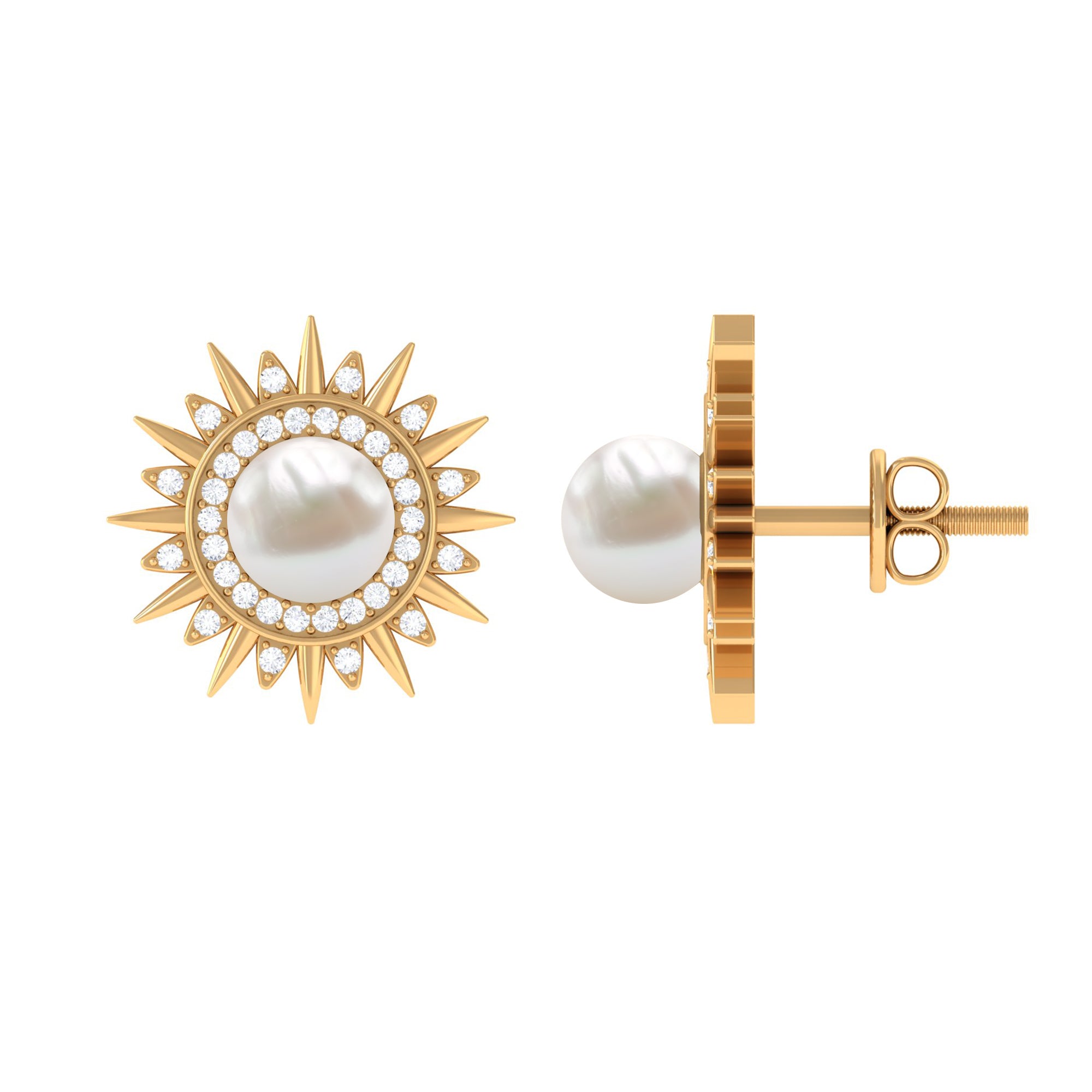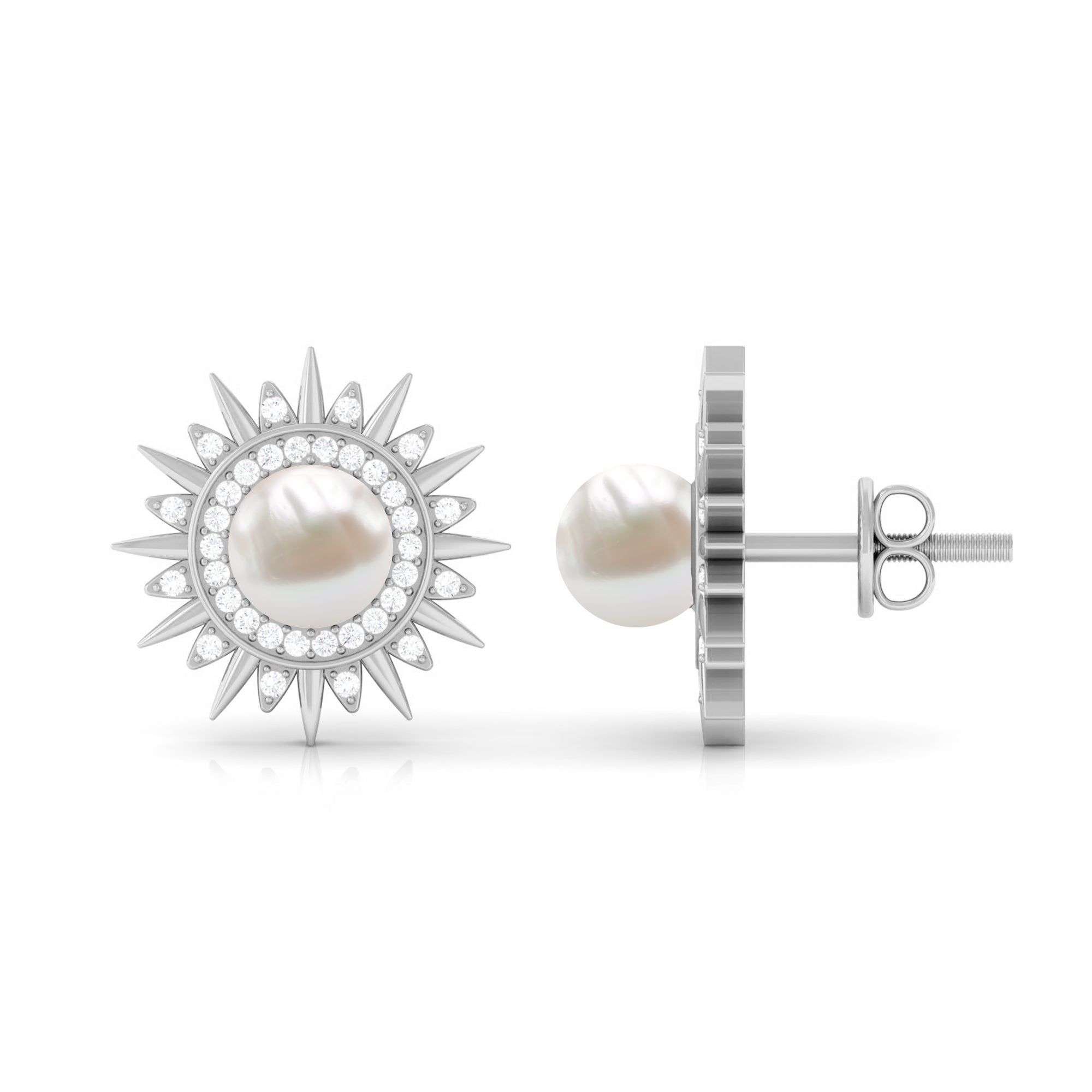 Freshwater Pearl Sunburst Stud Earrings with Diamond Halo