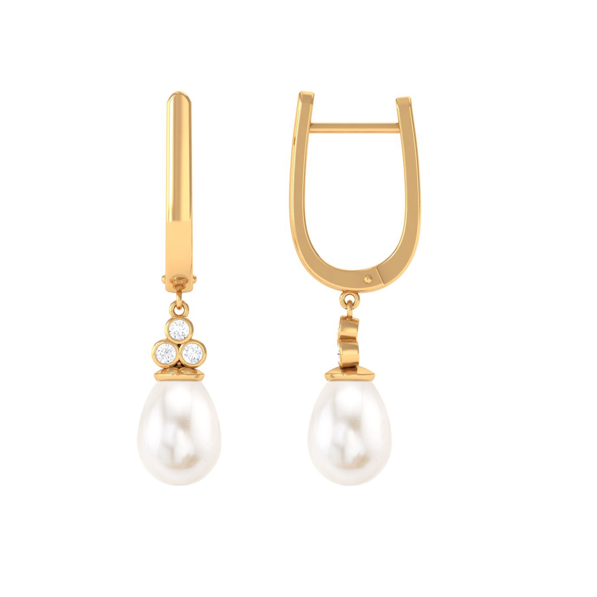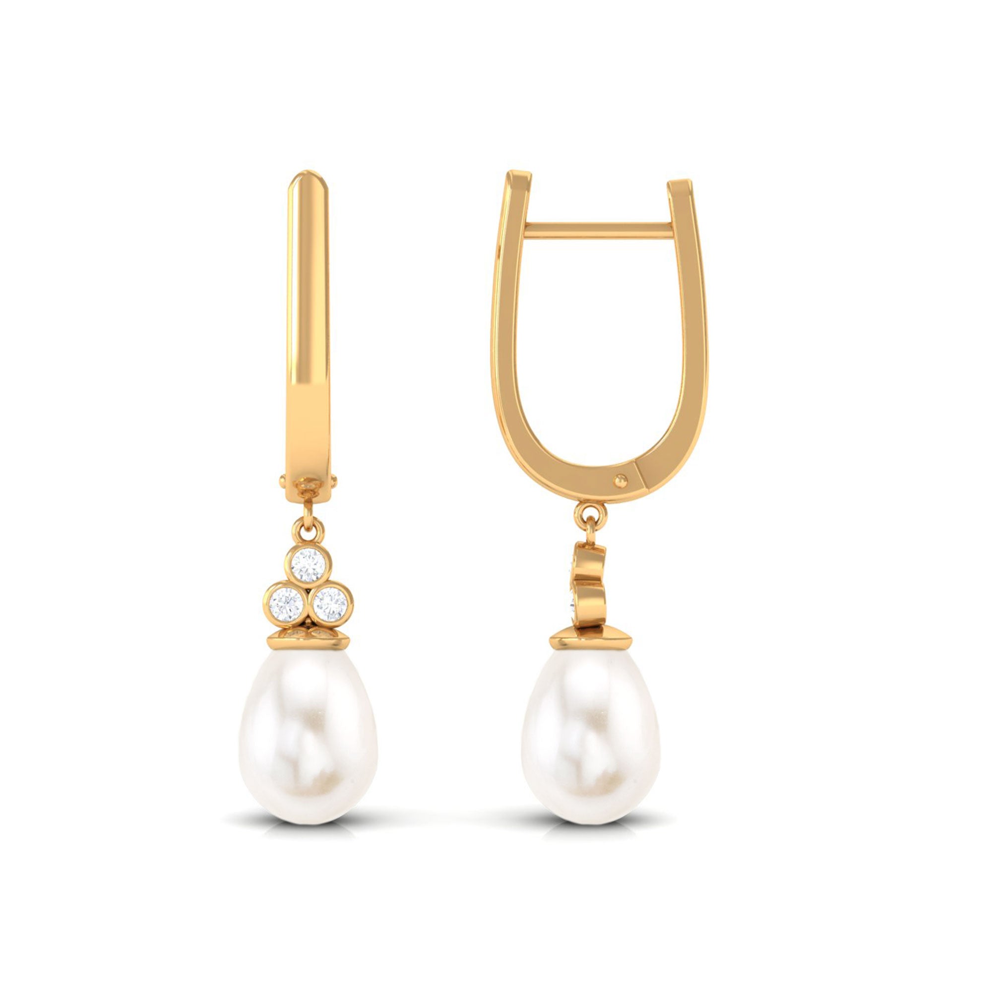 The stunning Teardrop Earrings are embellished with Freshwater Pearl hanging as a drop while sparkling three Round Diamonds enhance the charm of the hoop. Your look isnt complete without this captivating pair of Pearl Earrings that secures comfortably with a latch back closure. No need to look for occasions to style this pair, flaunt the Teardrop Pearl Earrings with any attire to get an elegant charm.