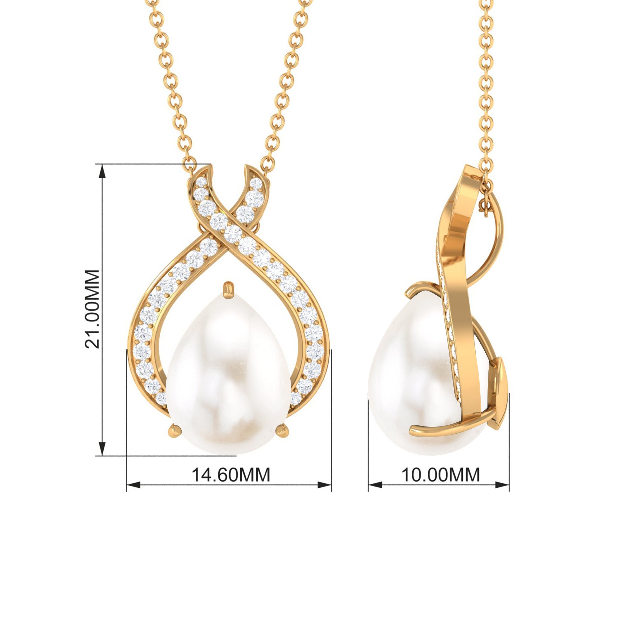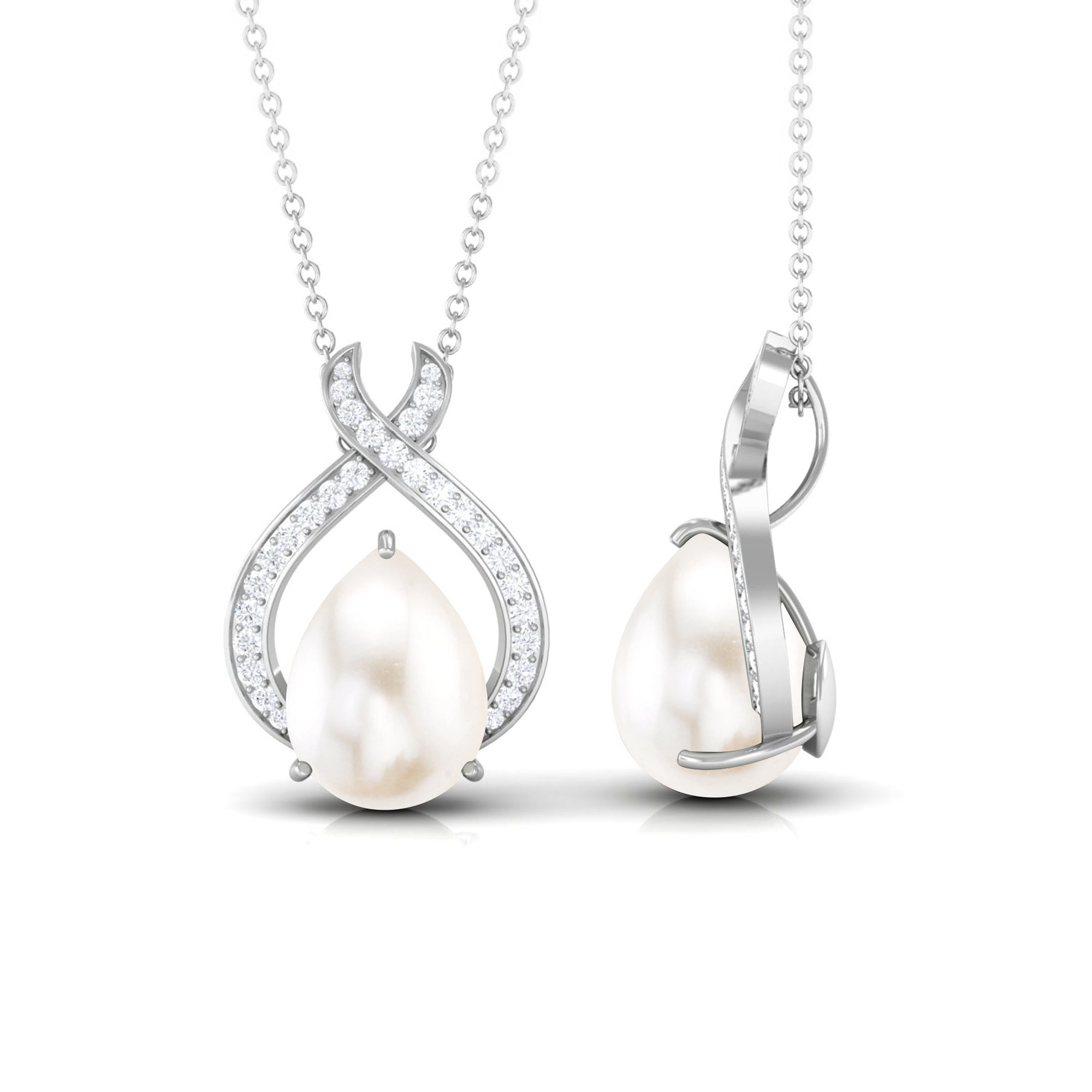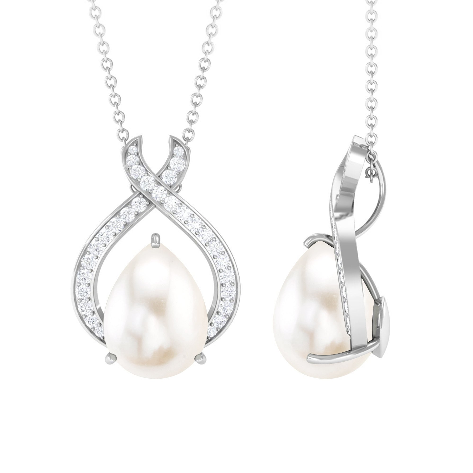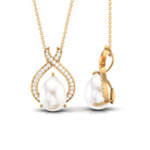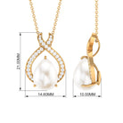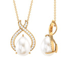 Freshwater Pearl Teardrop Pendant Necklace with Diamond