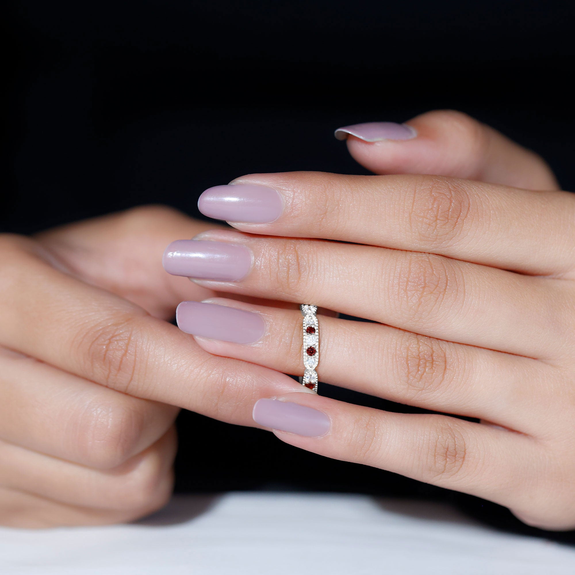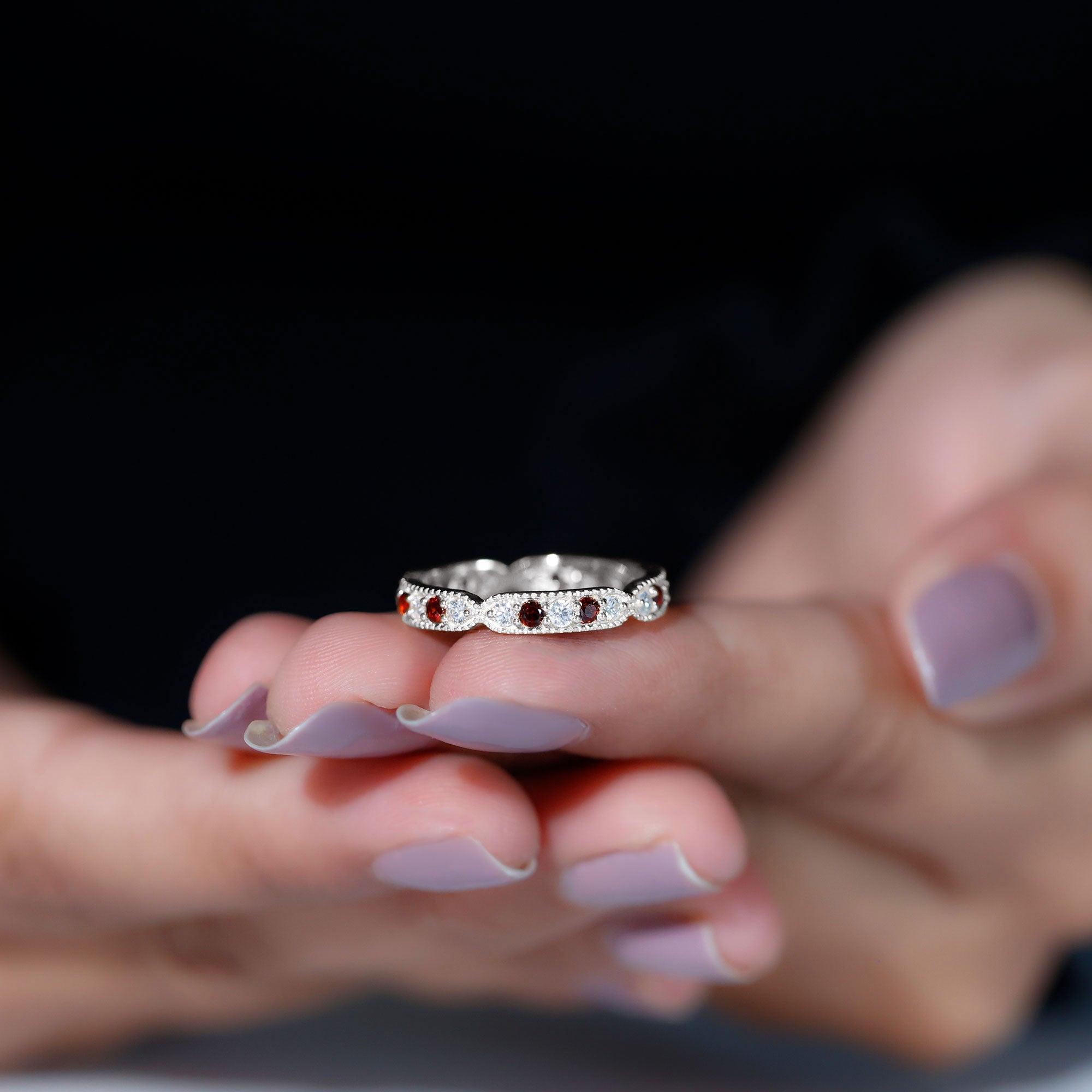 Vintage Inspired Garnet Eternity Ring with Diamond