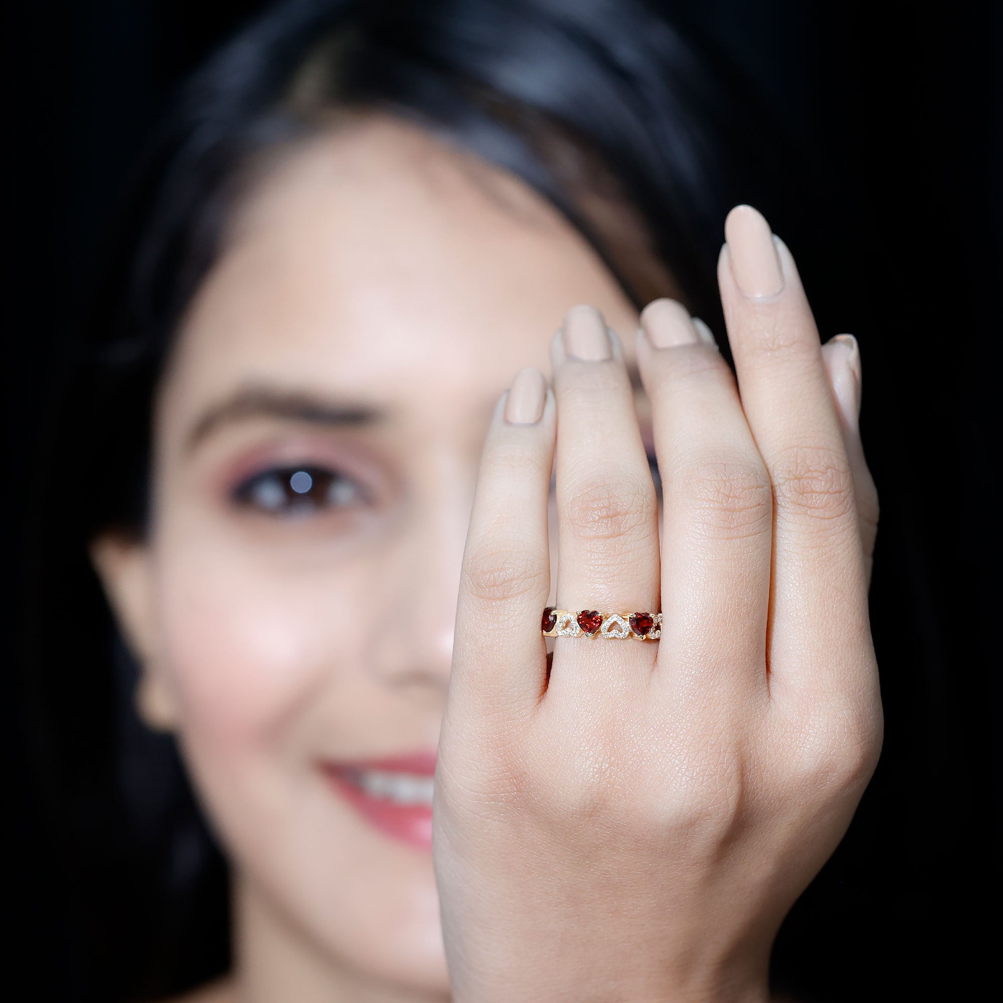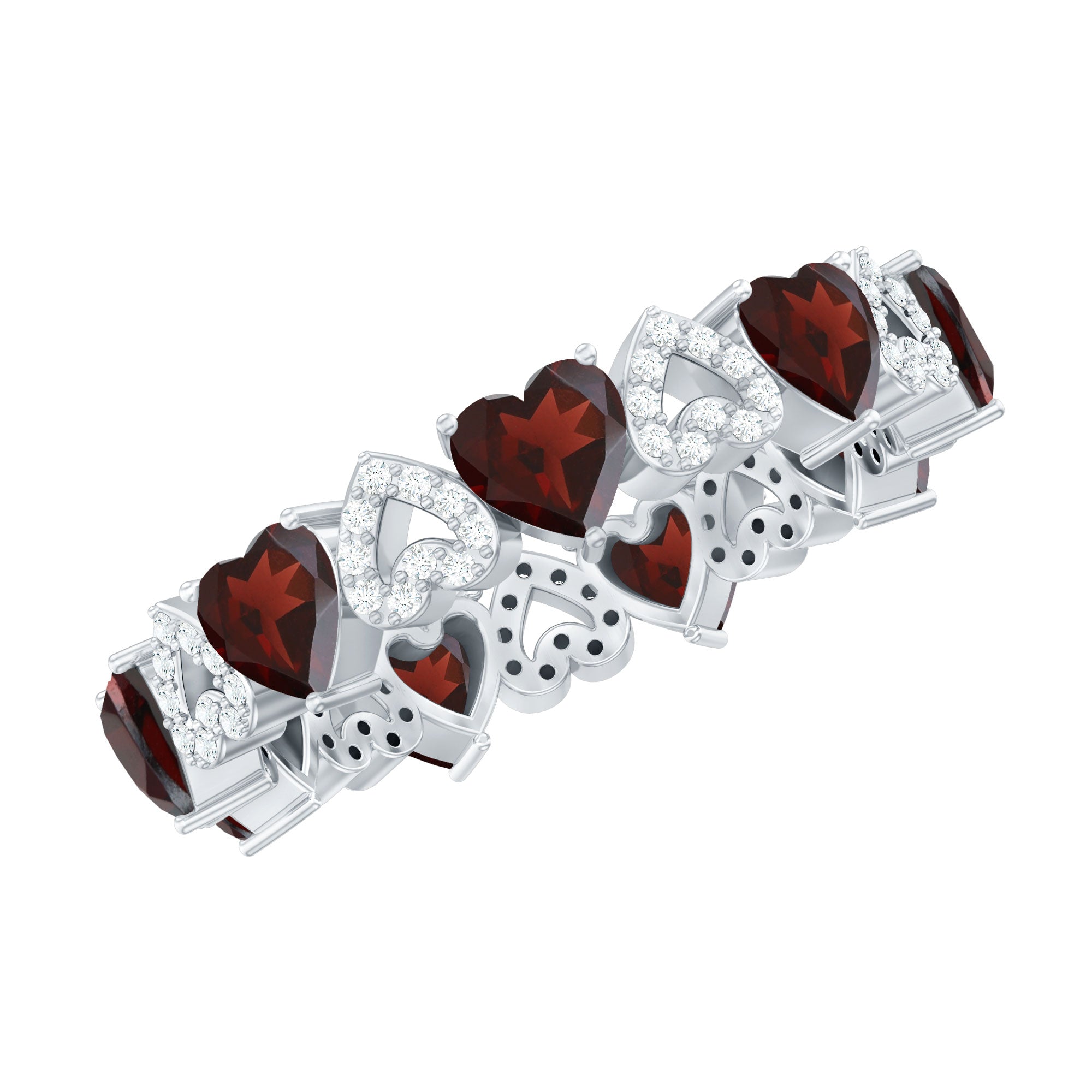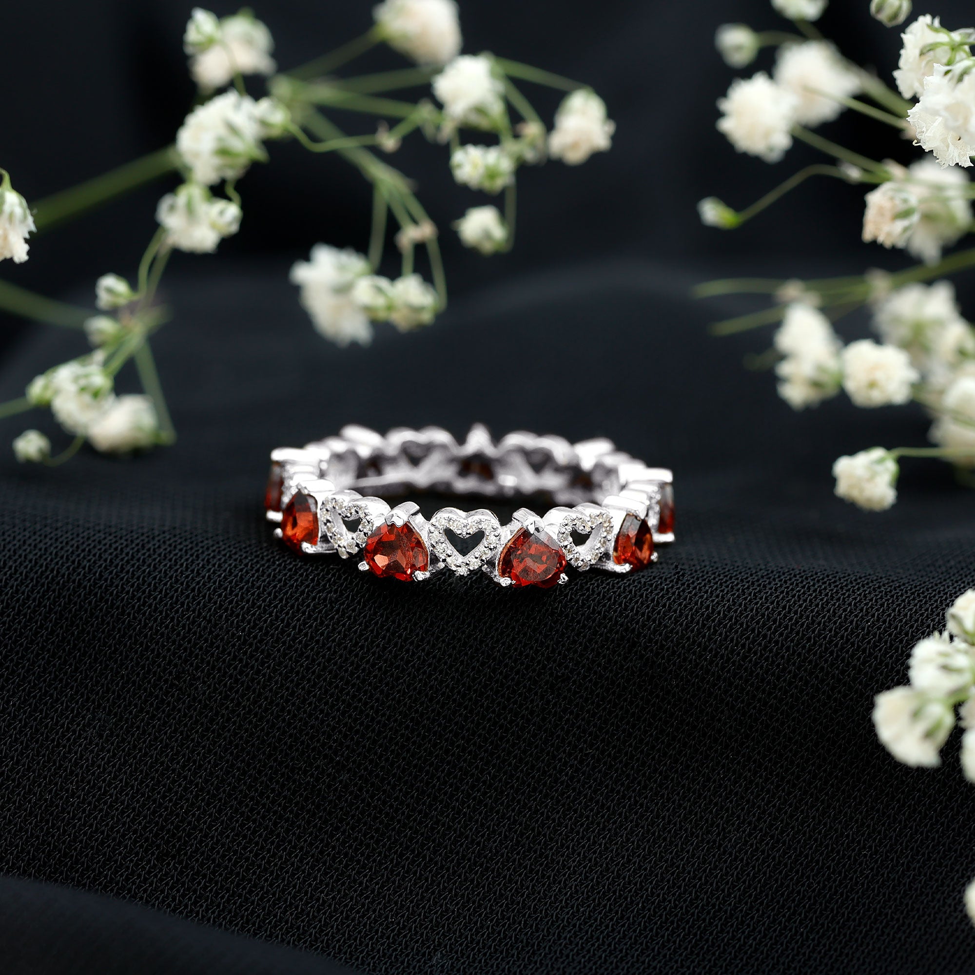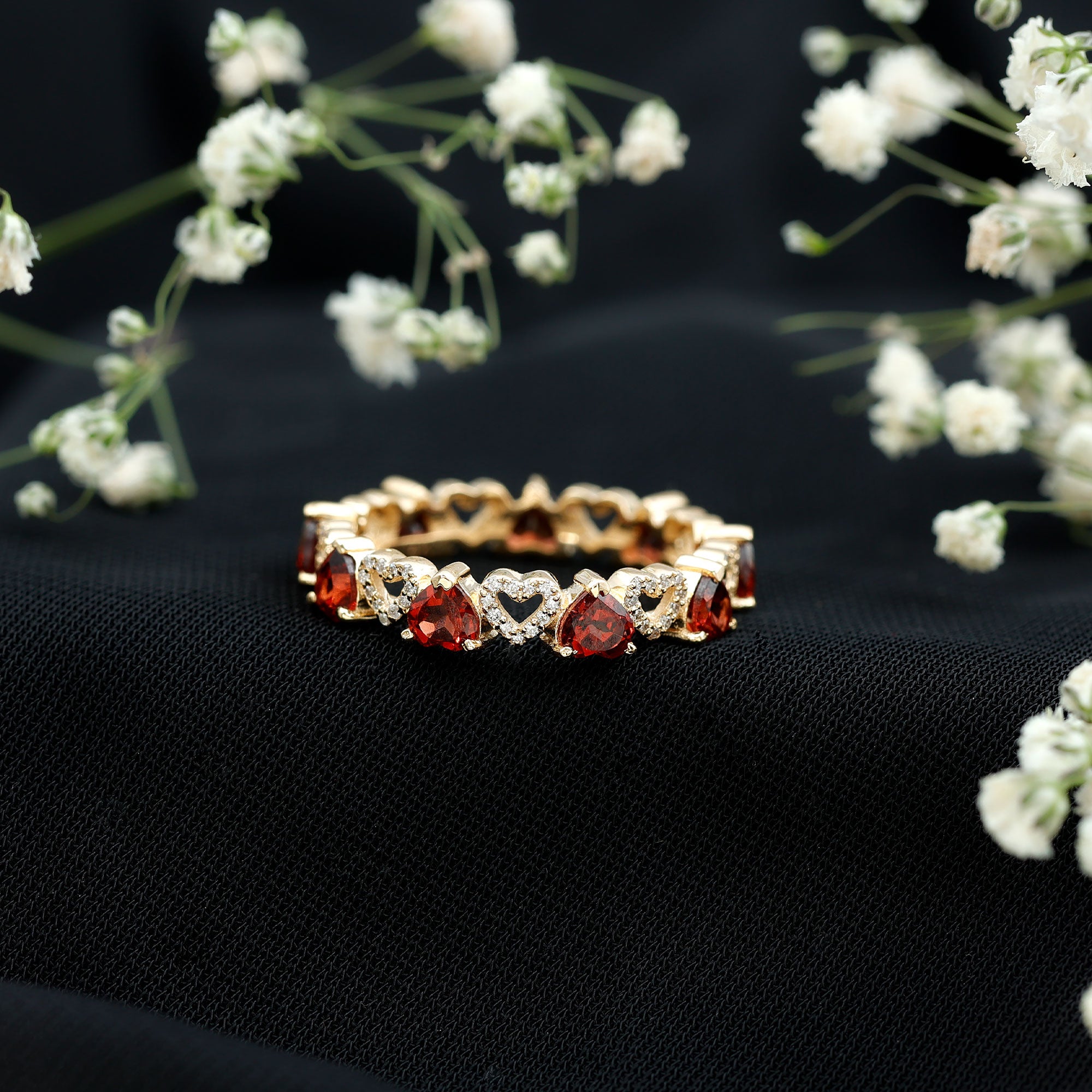 Natural Garnet Diamond Heart Eternity Ring for Anniversary