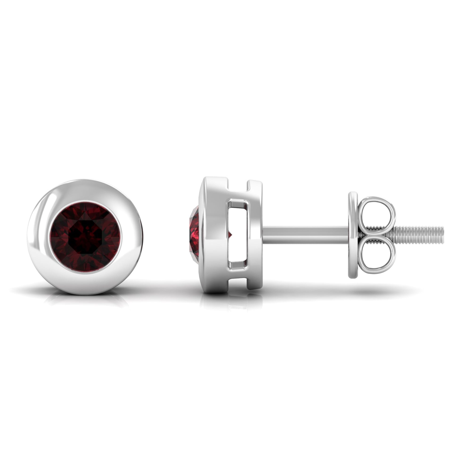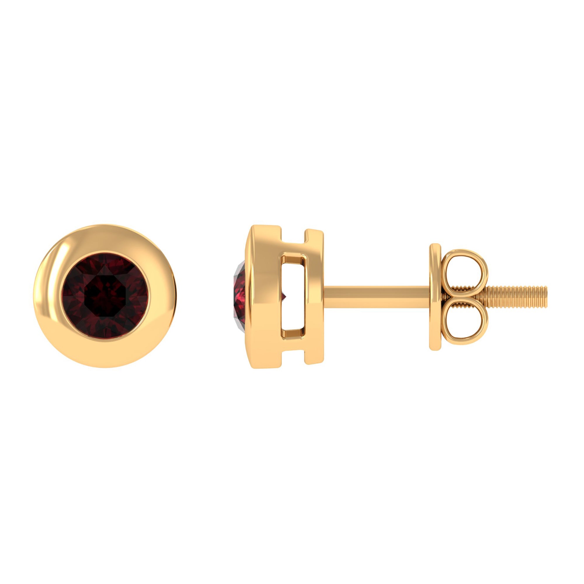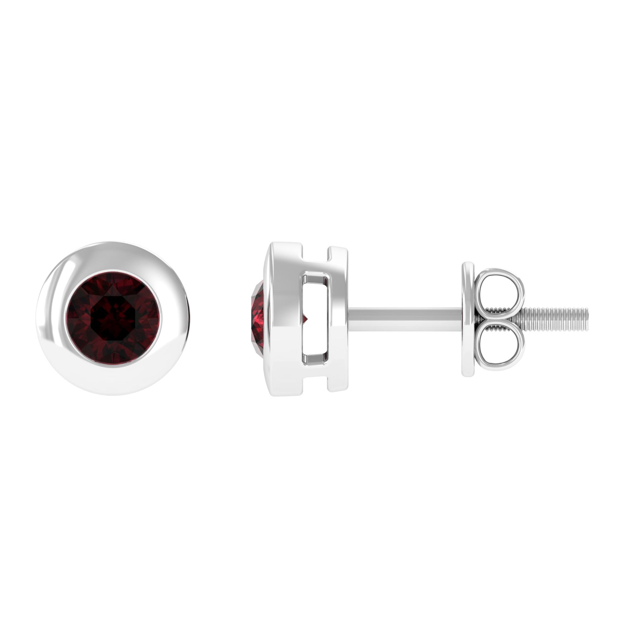 Garnet Solitaire Stud Earrings in Bezel Setting