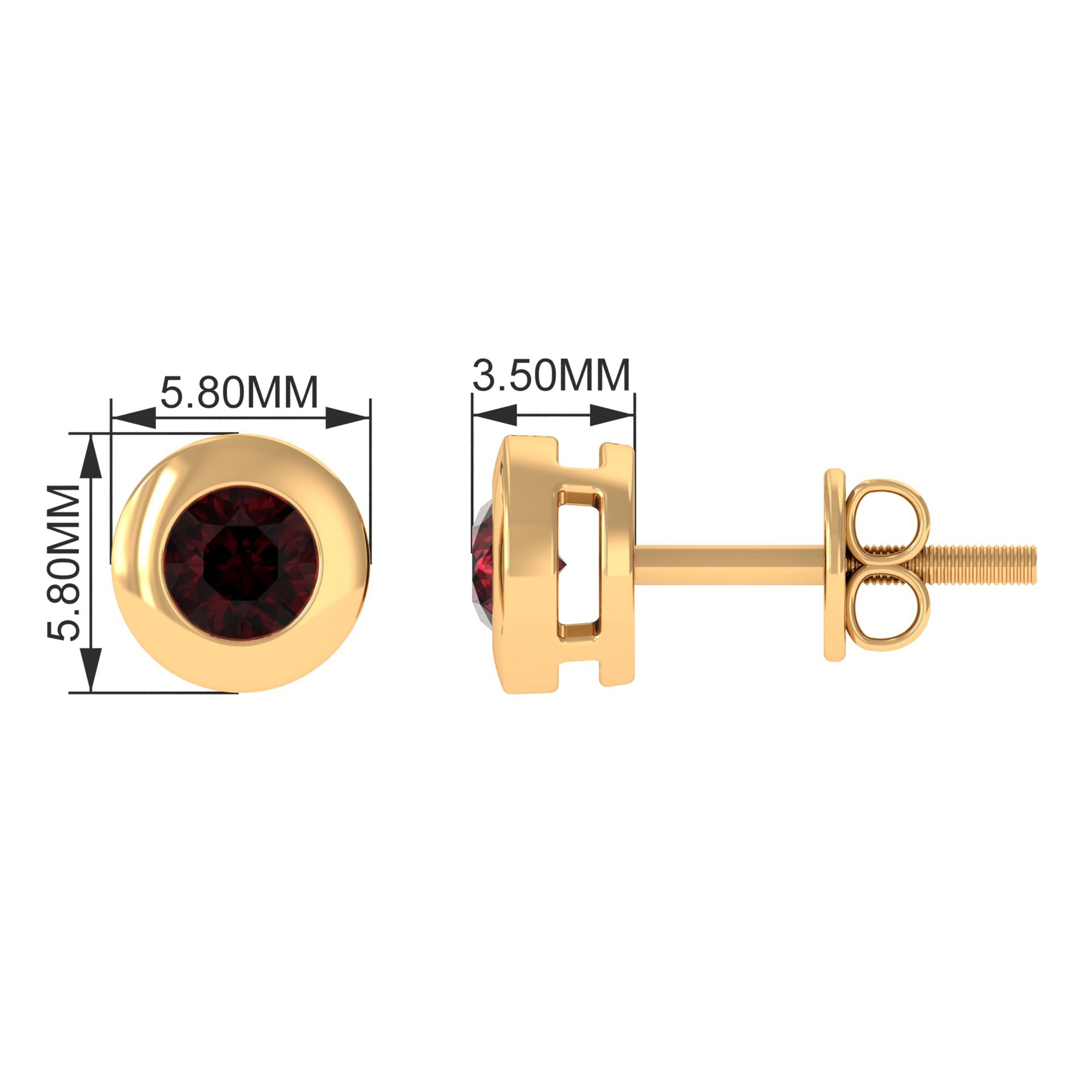These delicate Garnet Earrings are perfect for celebrating any occasion. Featuring a Round Shape Garnet secured in Bezel Setting set as a Solitaire. The Screw Back Closure will keep these Simple Earrings secured in place. Shine all day in these Garnet Stud Earrings for Women as you pair them with your casual, formal, or evening attire.