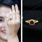 Garnet Vintage Engagement Ring with Lab Diamond Halo