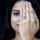 A breathtaking symbol of elegance and love, this Tanzanite Engagement Ring is a dream choice for every bride-to-be. Designed to make a lasting impression, this ring features a captivating 6X8 MM Oval Shaped Tanzanite set securely in prong setting, surrounded by a sparkling halo of round brilliant cut Moissanite. The combination creates a glowing, radiant look that is impossible to ignore. The blue hue of the AAA Quality Tanzanite makes this Halo Engagement Ring a standout piece, perfect for expressing deep emotions and everlasting affection. Whether you are planning an engagement, attending a special celebration, or simply want a show-stopping accessory, this Tanzanite and Moissanite Ring brings glamour and meaning to every moment. Crafted to reflect timeless beauty, this Oval Tanzanite Ring offers a classic yet bold design. The halo of shimmering moissanite stones adds sparkle and depth, while the oval center stone enhances the elegant and elongated look of the finger. Its luxurious look and sentimental value make it a perfect heirloom piece to pass down through generations, holding memories and meaning that last forever. Handcrafted with care, and beautifully packaged in a premium jewelry box, this December Birthstone Ring is ready to be treasured. Celebrate your love, your story, and your unforgettable moments with this stunning tanzanite ring that is as unique and beautiful as you are.