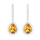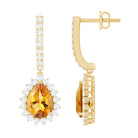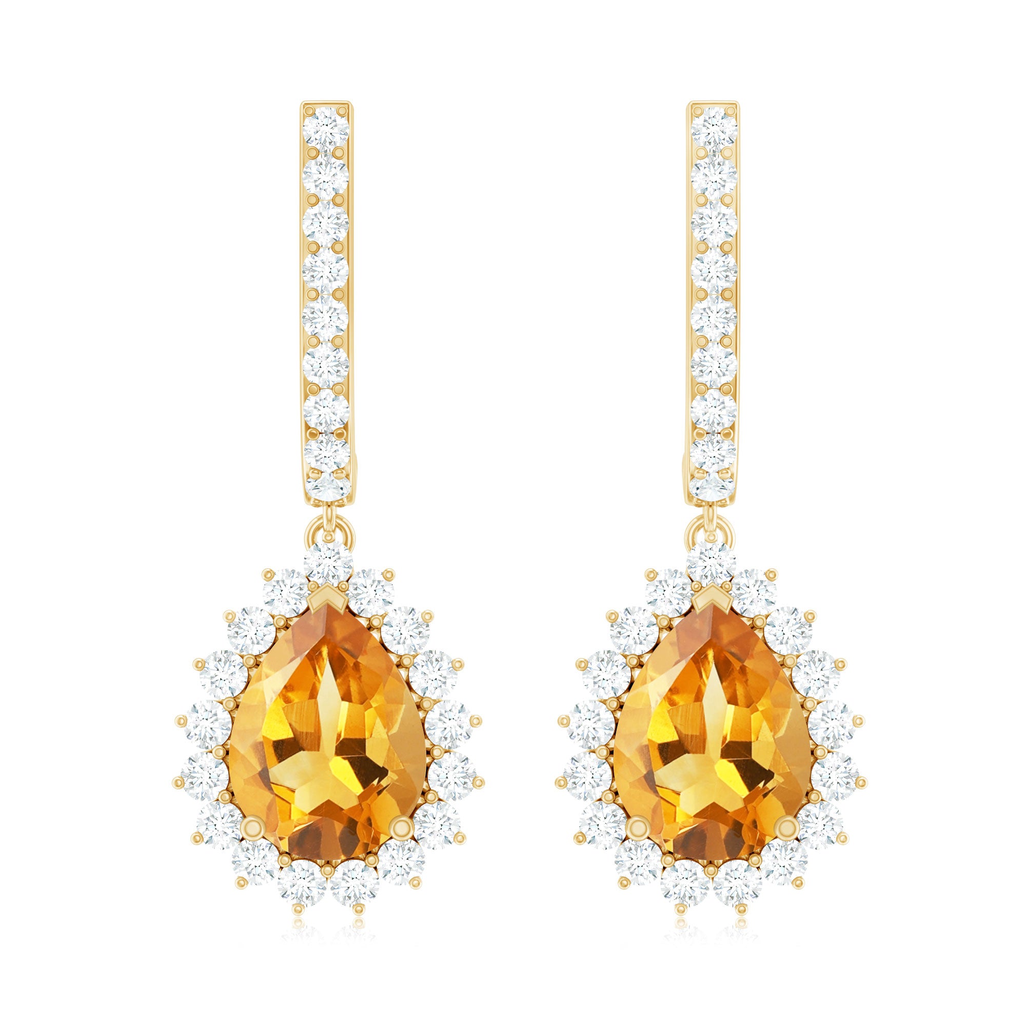 Genuine 6X8mm Pear Shape Citrine Drop Earrings with Moissanite