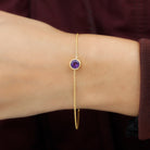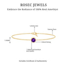 Genuine 7MM Amethyst Solitaire Chain Bracelet in Bezel Set