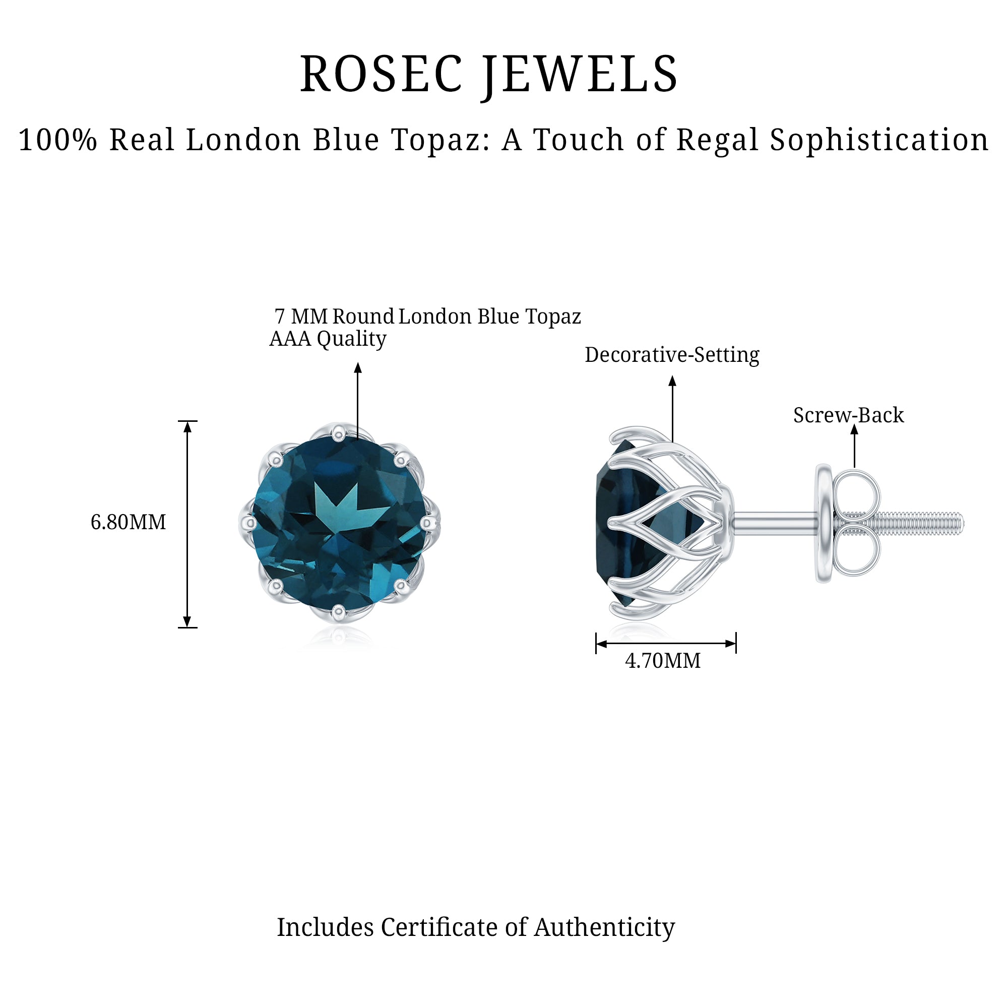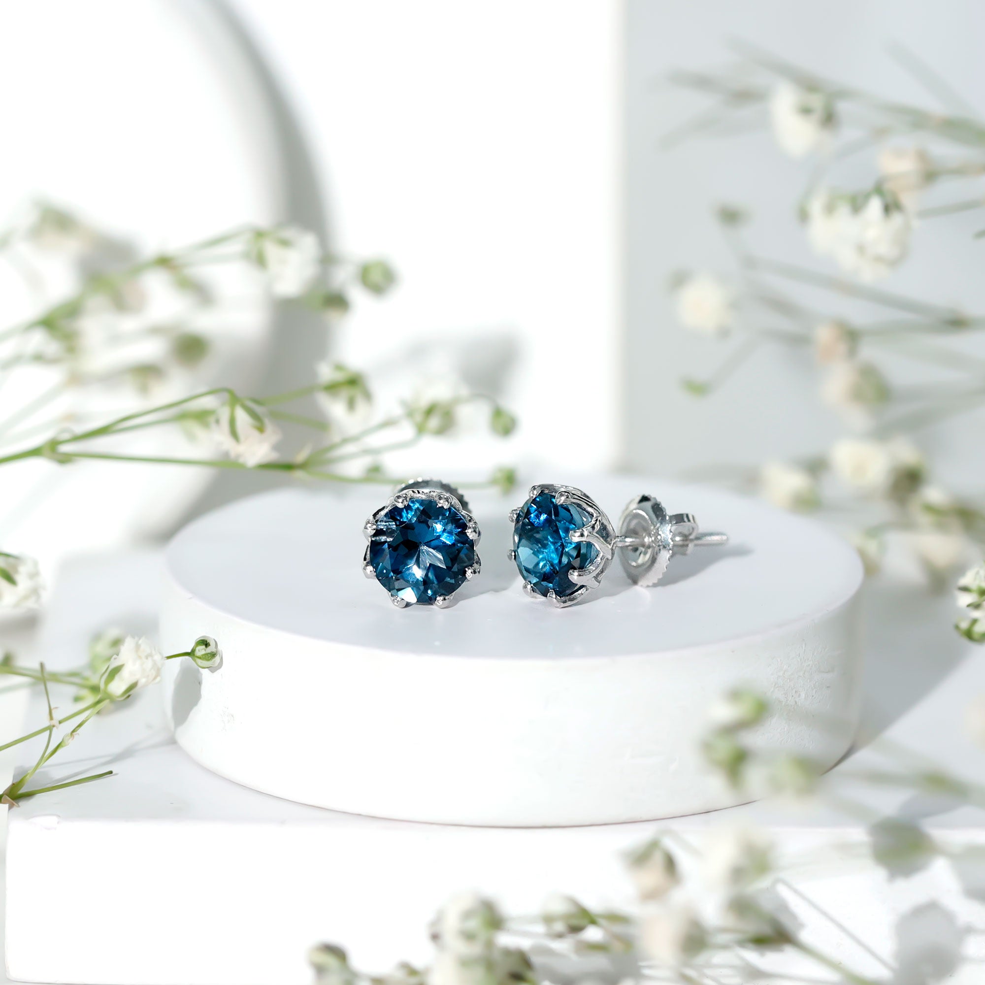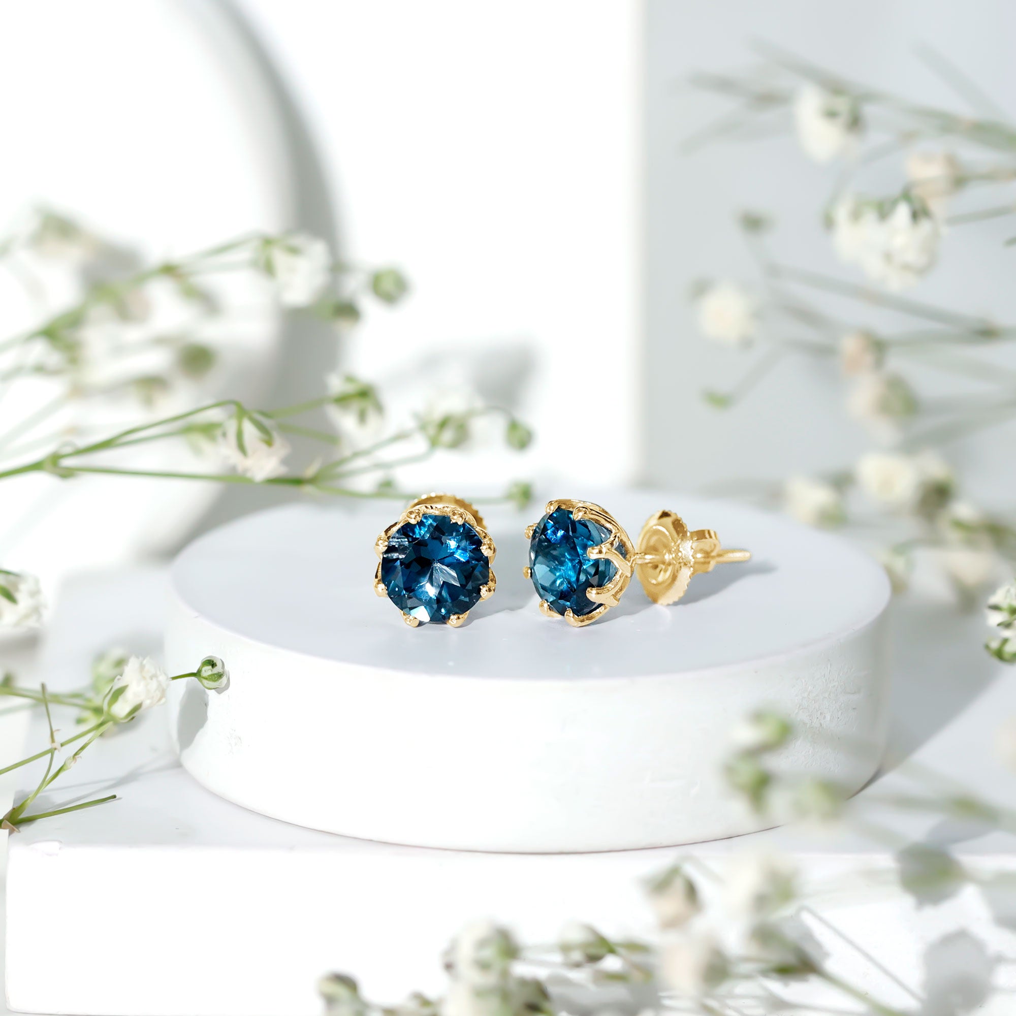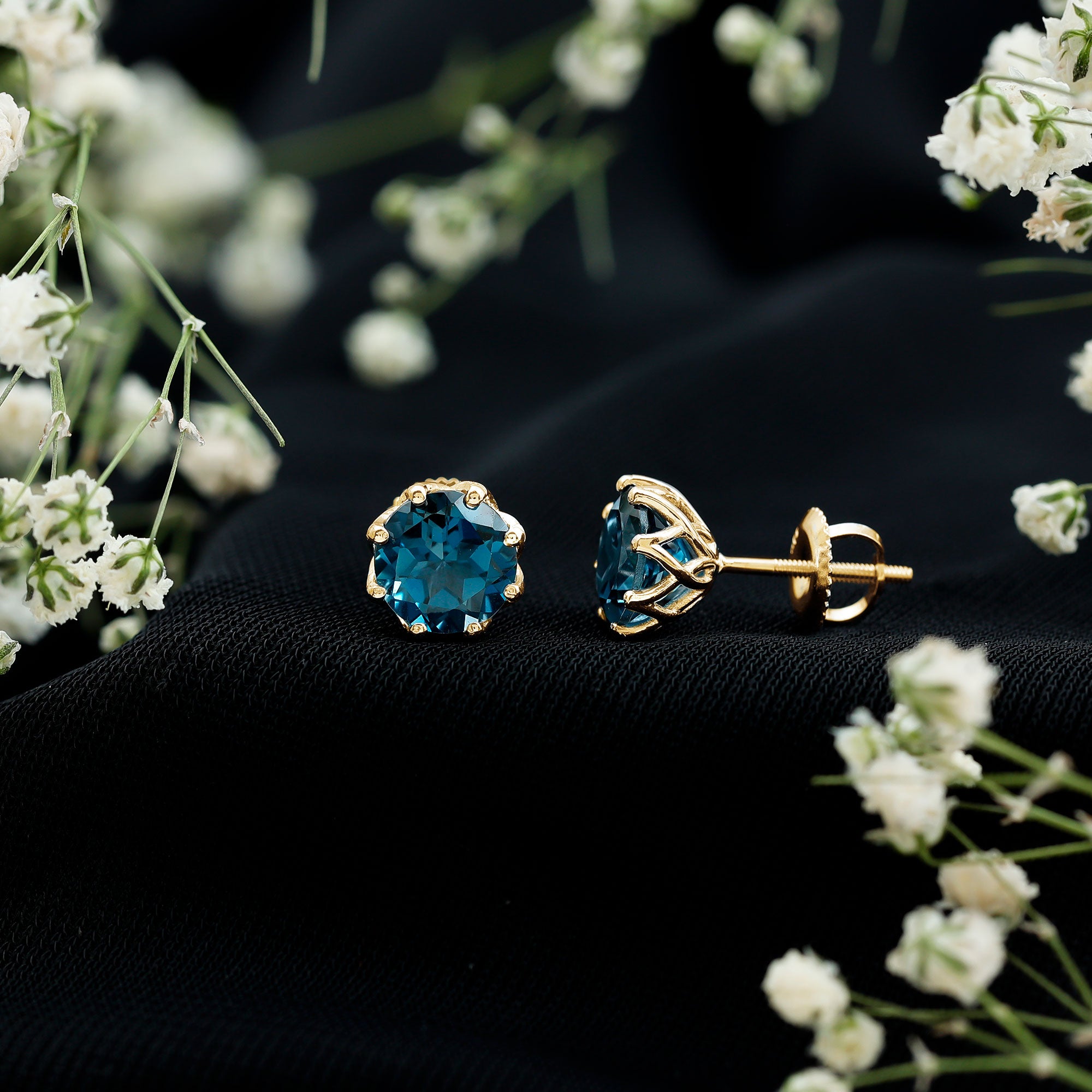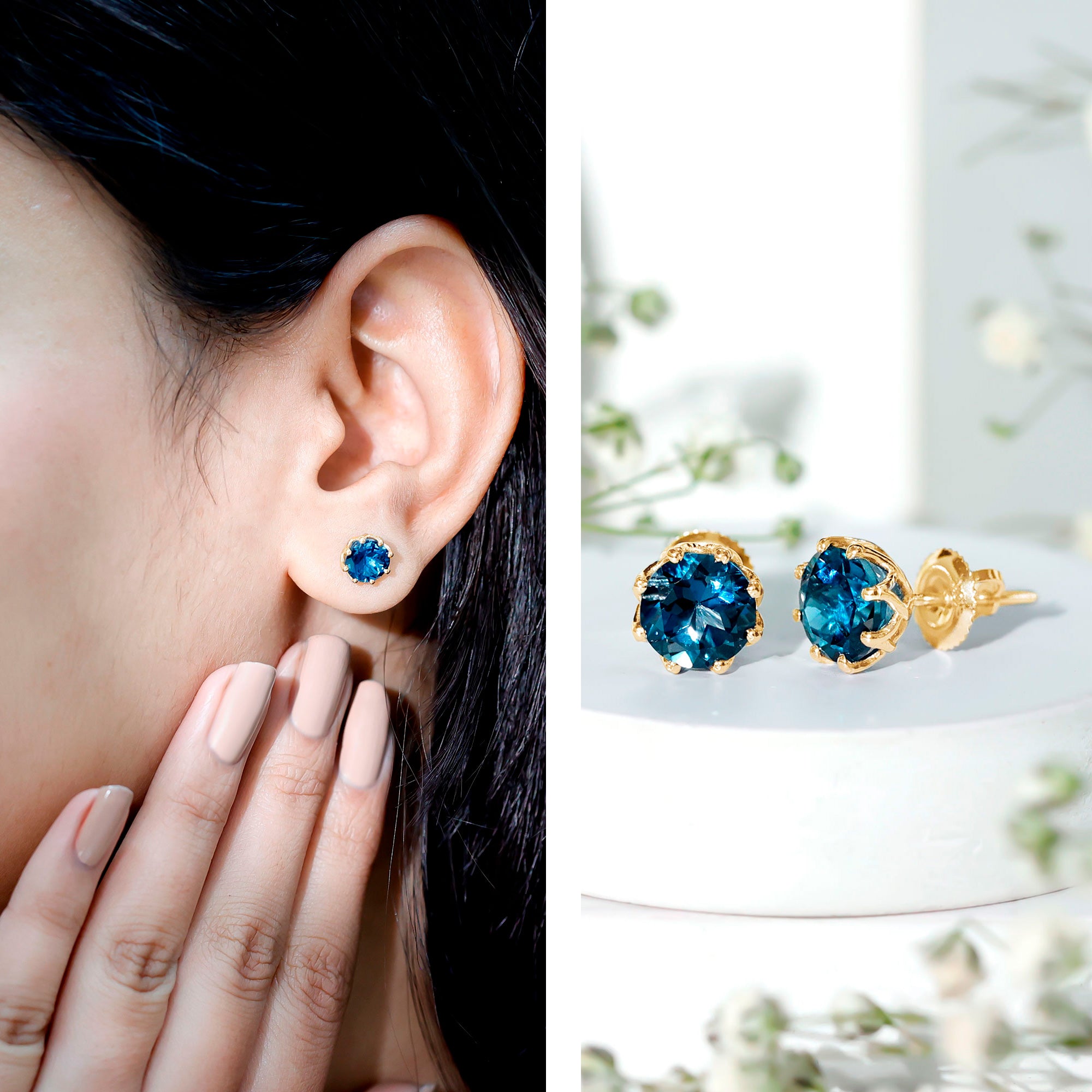 Timeless elegance meets everyday comfort in these London Blue Topaz Stud Earrings, designed for women who appreciate simple jewelry. Embellished with a 7 MM round London Blue Topaz, carefully set in decorative setting. Screw back closures provide a comfortable and safe fit, making them perfect for daily wear. The classic round shape and simple design make these Solitaire Stud Earrings versatile enough to pair with casual outfits or dressy ensembles for special occasions. The subtle sparkle of the Topaz adds a touch of sophistication without being overwhelming, allowing the wearer to express elegance effortlessly. Ideal as a December birthstone accessory, these Blue Topaz Earrings hold both personal and aesthetic value. They can serve as a meaningful gift for birthdays, holidays, or as a special treat for oneself. Lightweight and easy to wear, they combine durability with classic style, making them suitable for any wardrobe.