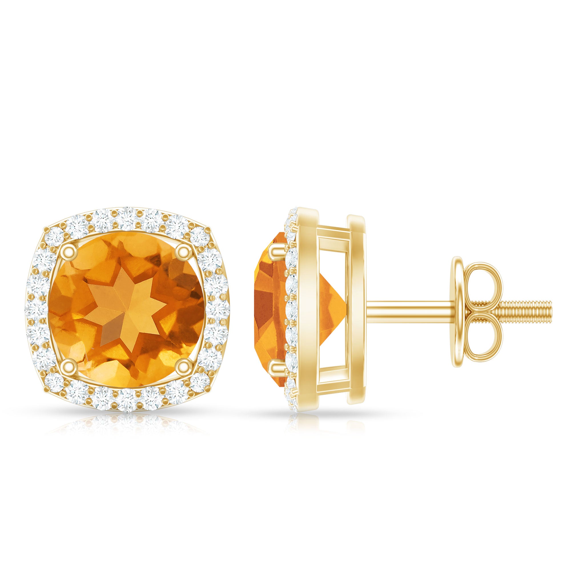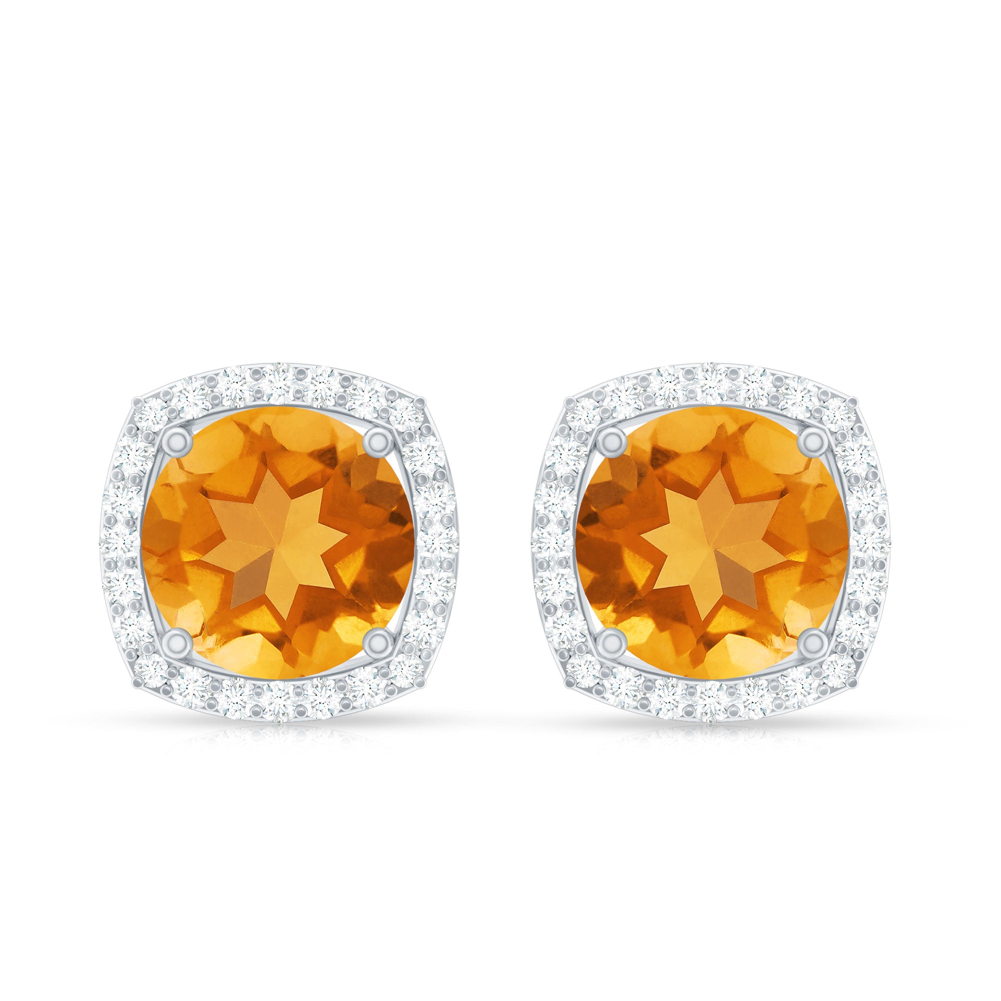 Genuine 7mm Round Citrine Stud Earrings with Diamond Halo