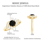 Genuine 8mm Round Black Onyx Floral Engagement Ring with Certificate