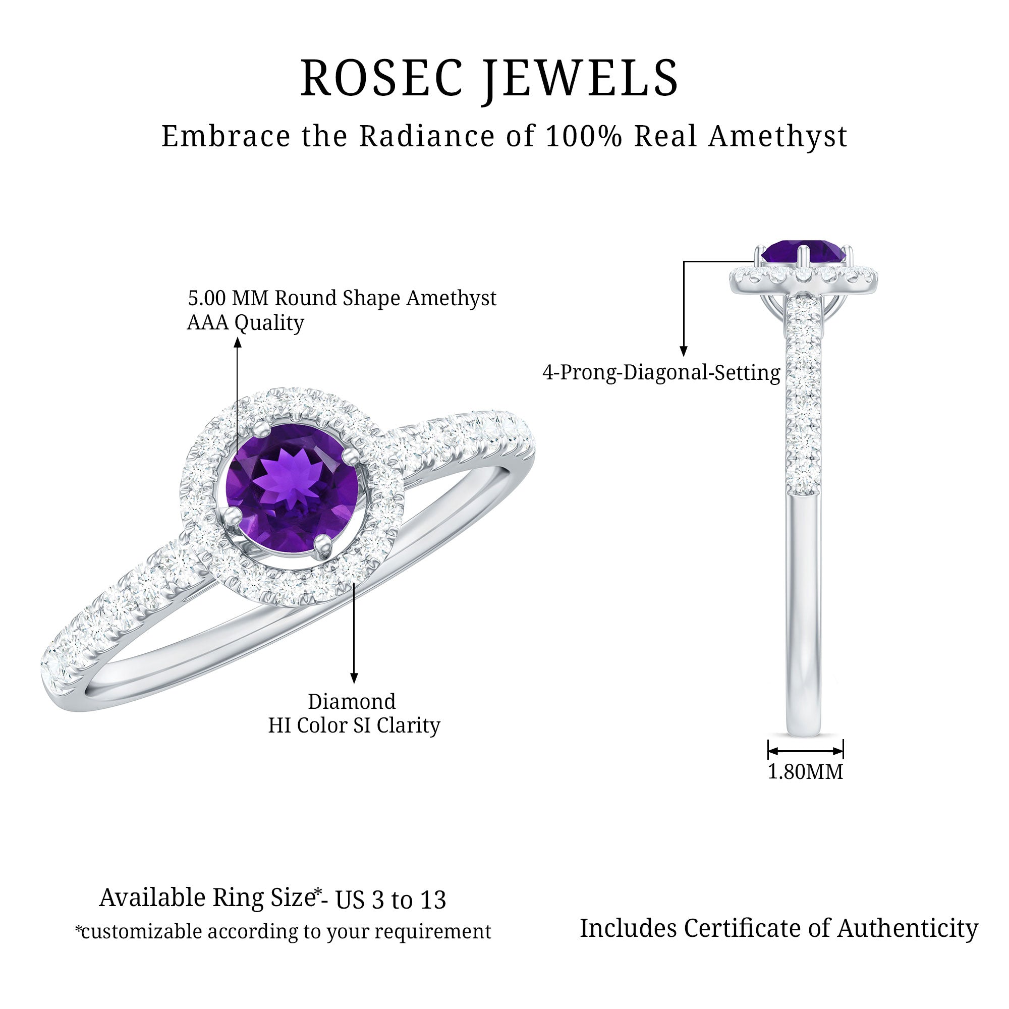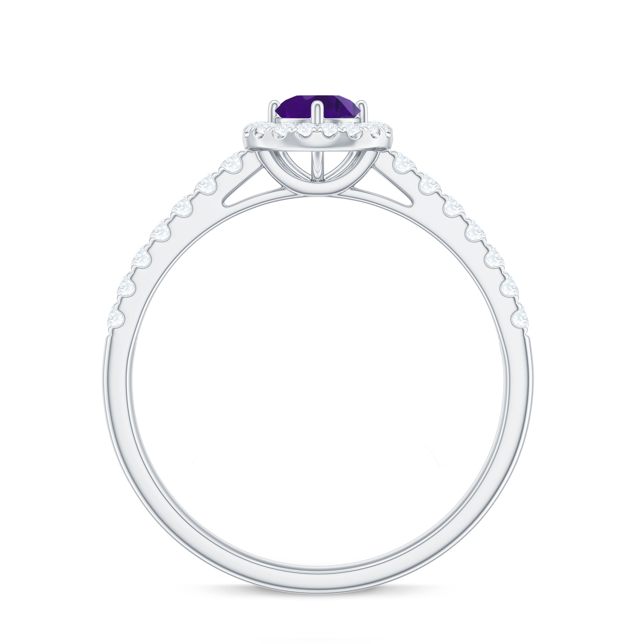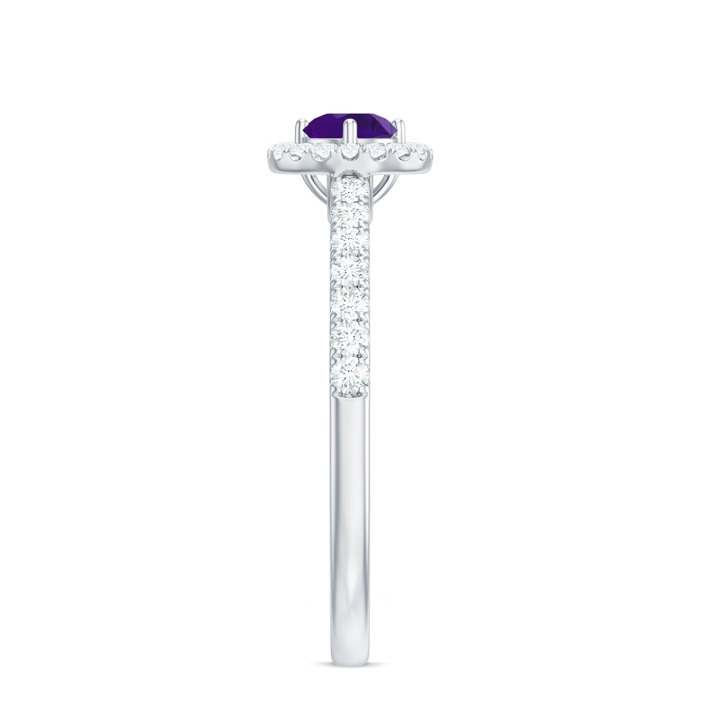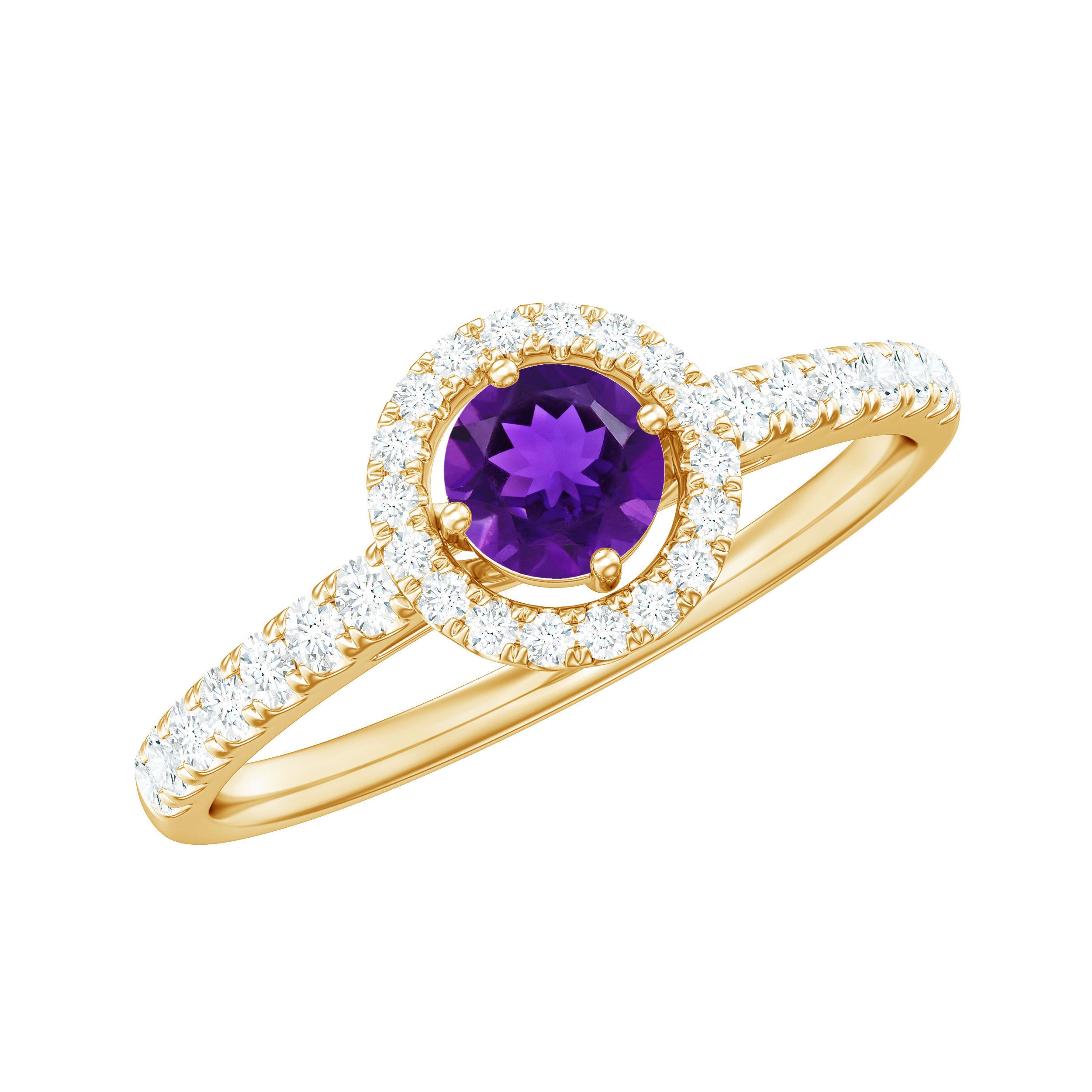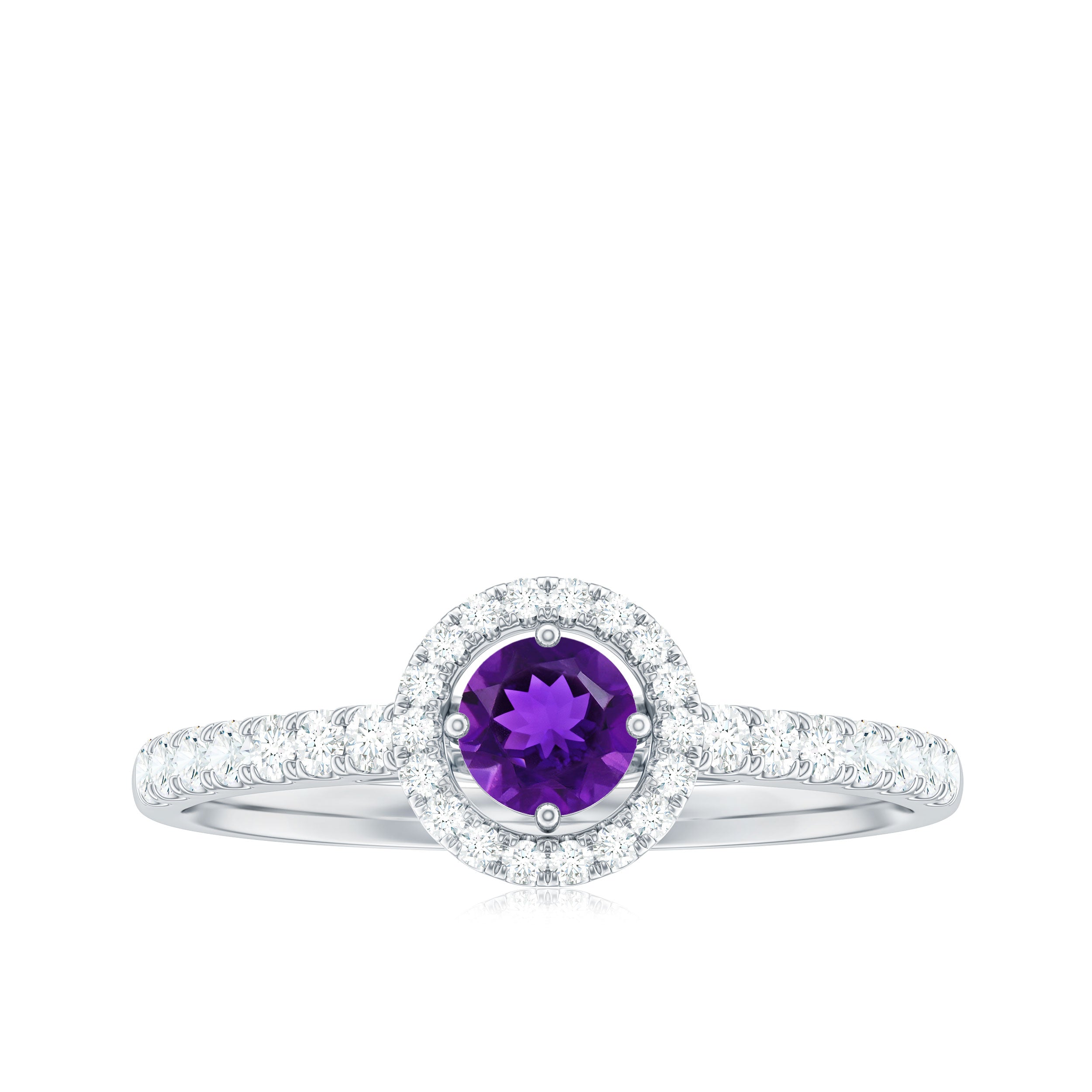 Genuine Amethyst and Diamond Halo Engagement Ring