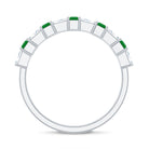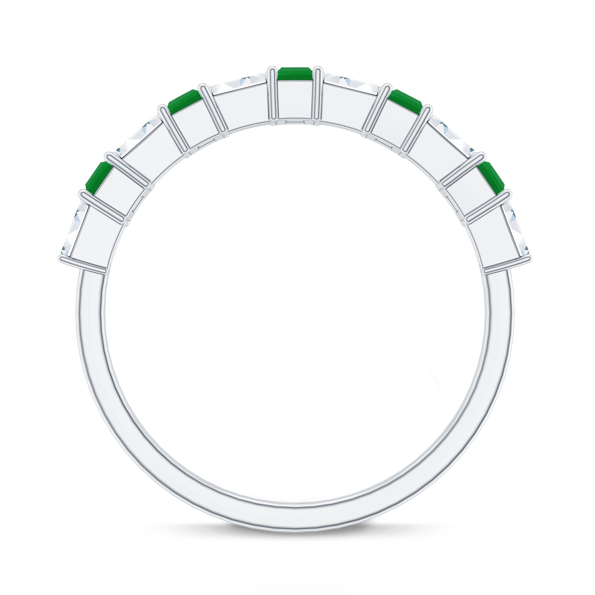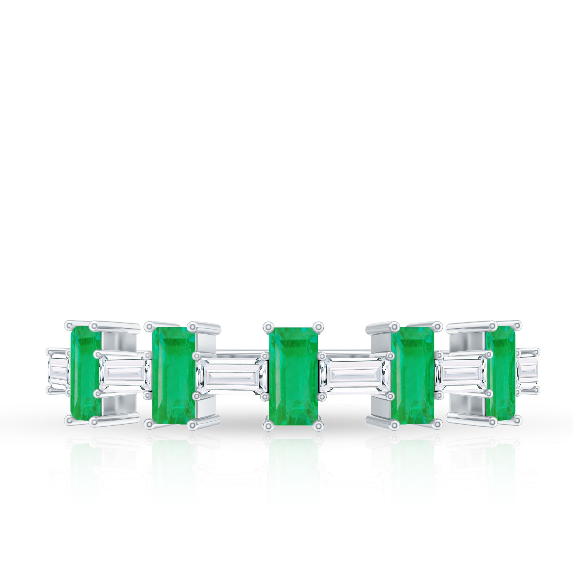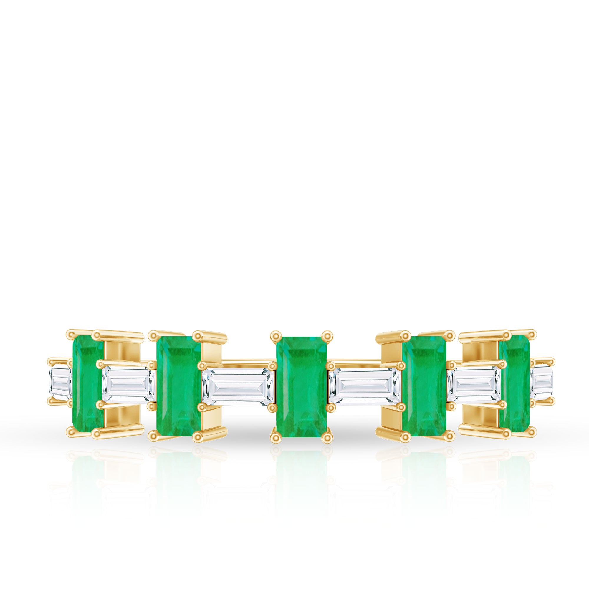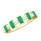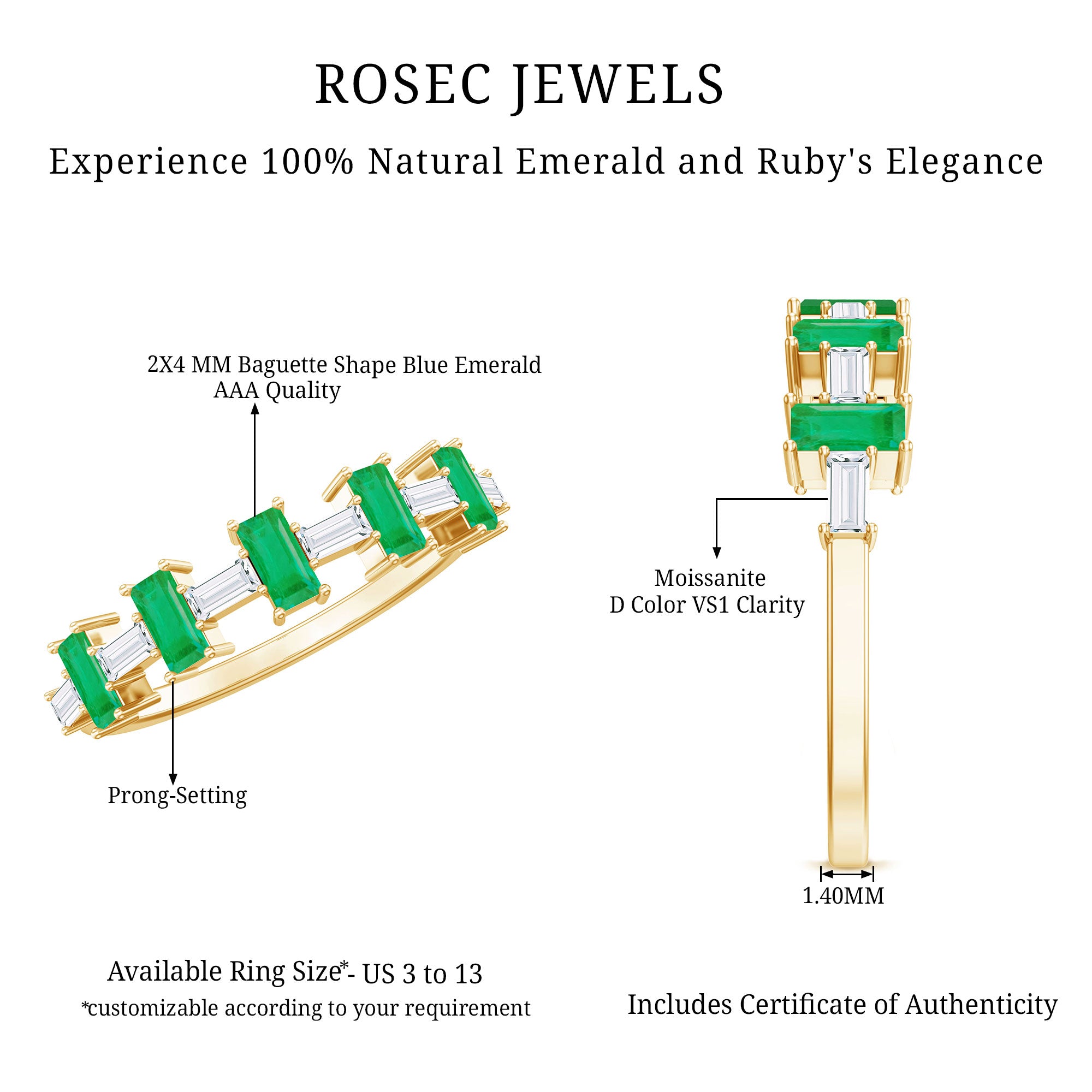 Genuine Baguette Emerald Half Eternity Ring with Moissanite
