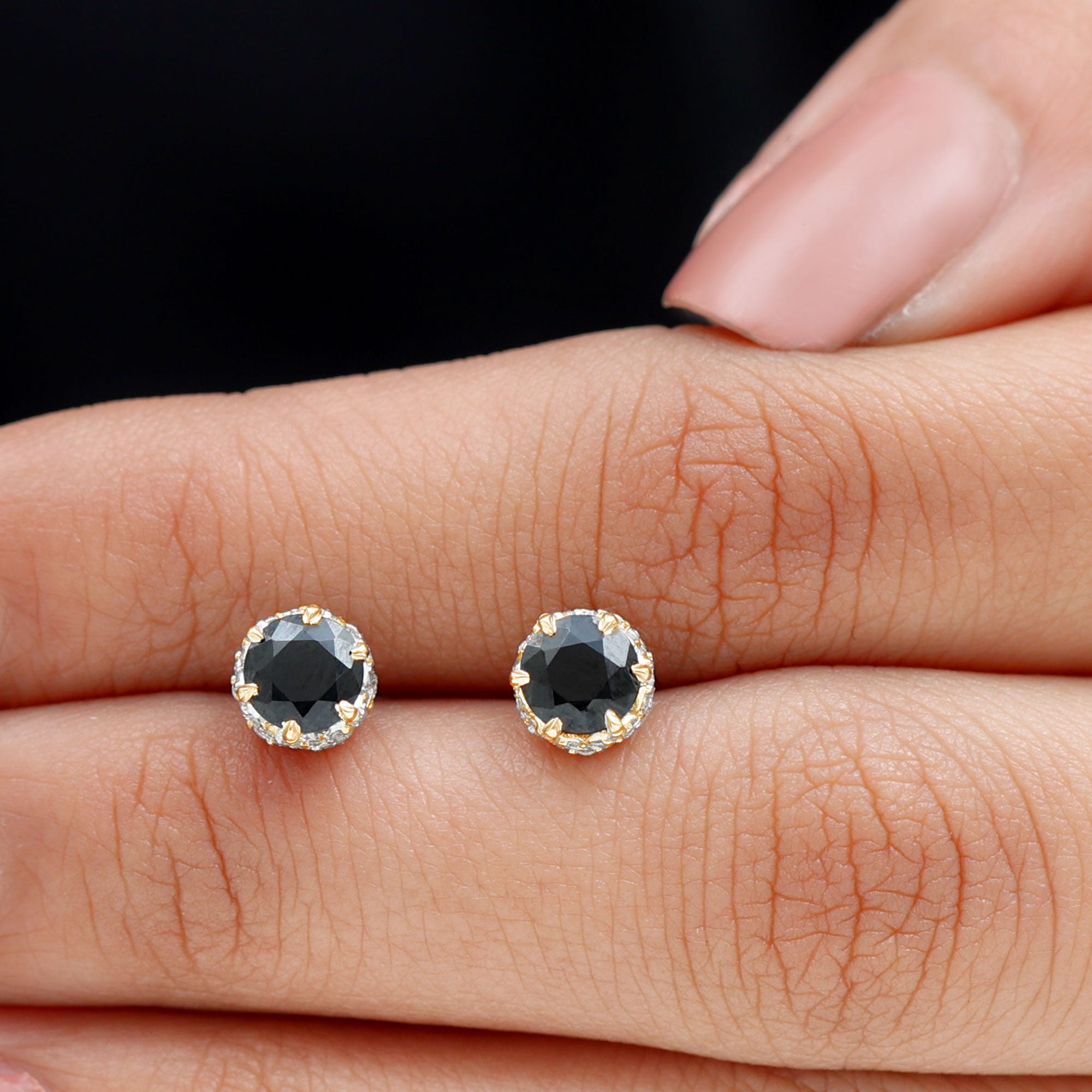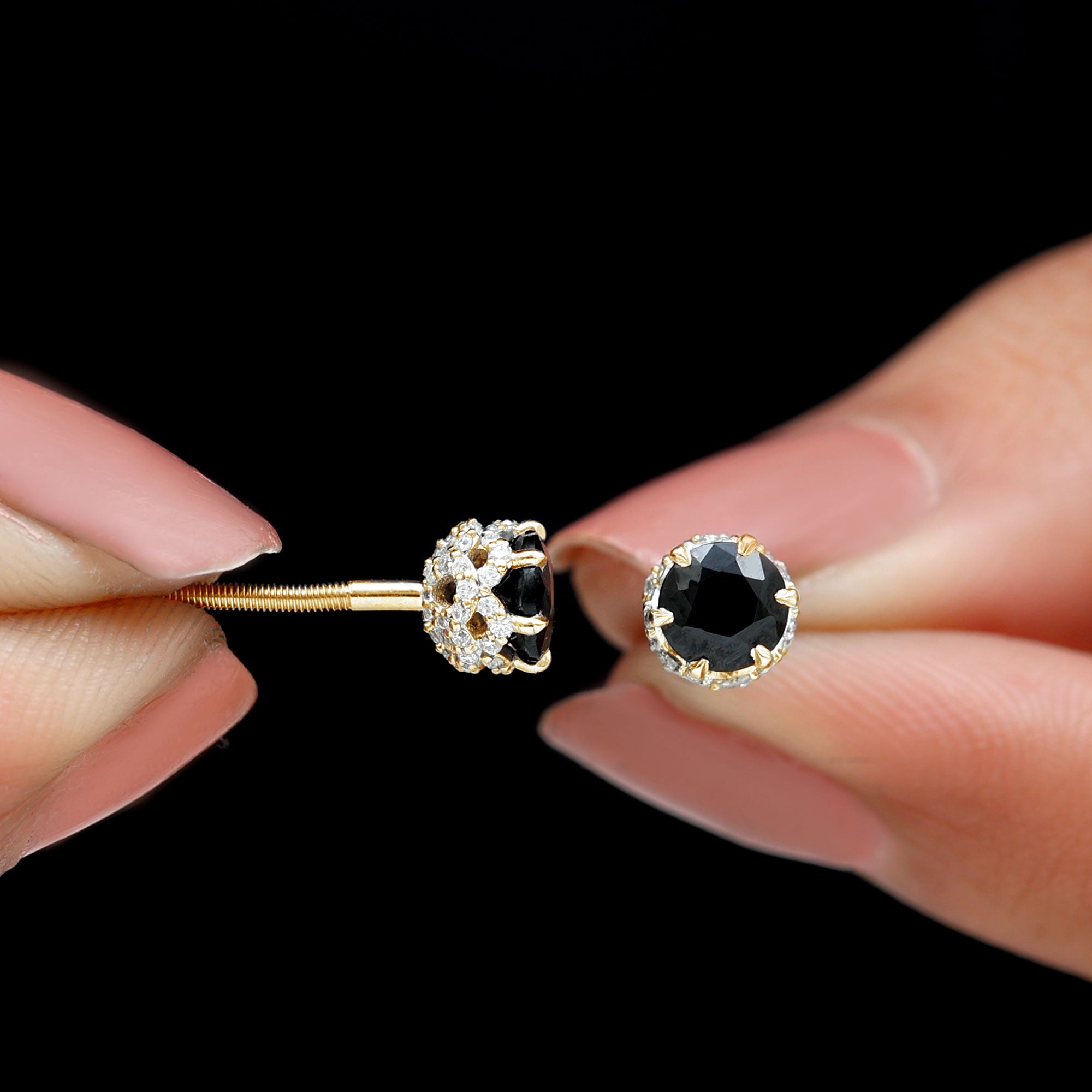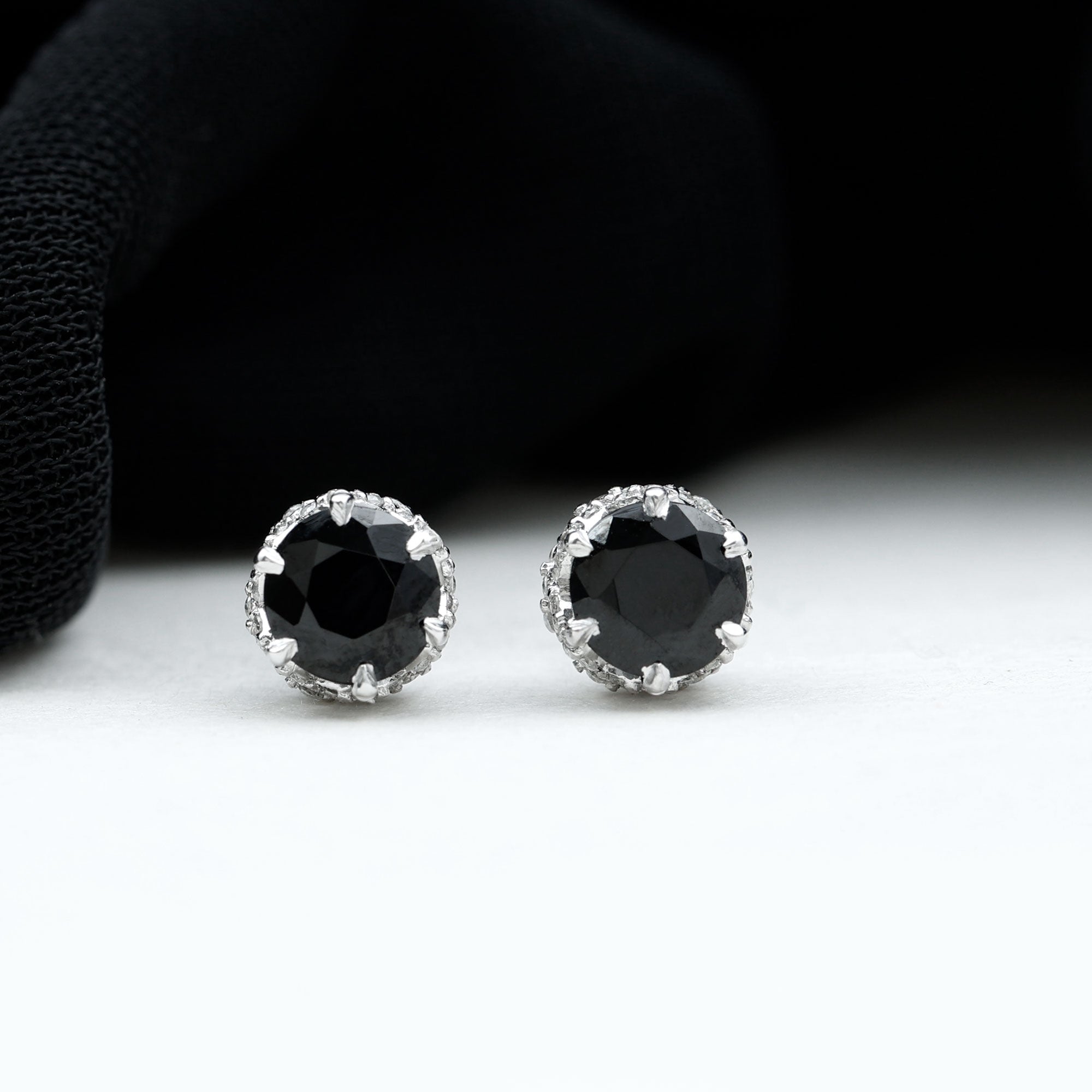 A timeless addition to any jewelry collection, these Black Diamond Stud Earrings offer a stunning contrast that blends classic elegance with modern sophistication. At the center of each earring lies a bold 5 mm Round Shape Black Diamond set in 6 Claw Prong Setting, its deep, mysterious hue beautifully highlighted by sparkling White Diamond stones. This striking combination creates a look that is both chic and eye-catching, making these Black and White Earrings the perfect accessory for any occasion. Whether you are dressing up for a night out or adding a touch of luxury to your everyday ensemble, these Black Diamond Earrings elevate your style with effortless grace. The secure Screw Back Closure ensures a comfortable fit, allowing you to wear them with confidence all day or night. Presented in a jewelry box, these Designer Stud Earrings make a thoughtful gift for someone special or a perfect treat for yourself. Their versatile design means they pair beautifully with a variety of outfits, adding just the right amount of sparkle to your look.