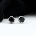 Genuine Black Diamond Floral Stud Earrings with White Diamond