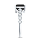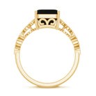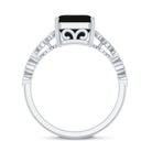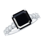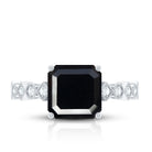 Genuine Black Onyx 8mm Asscher Cut Engagement Ring with Diamond