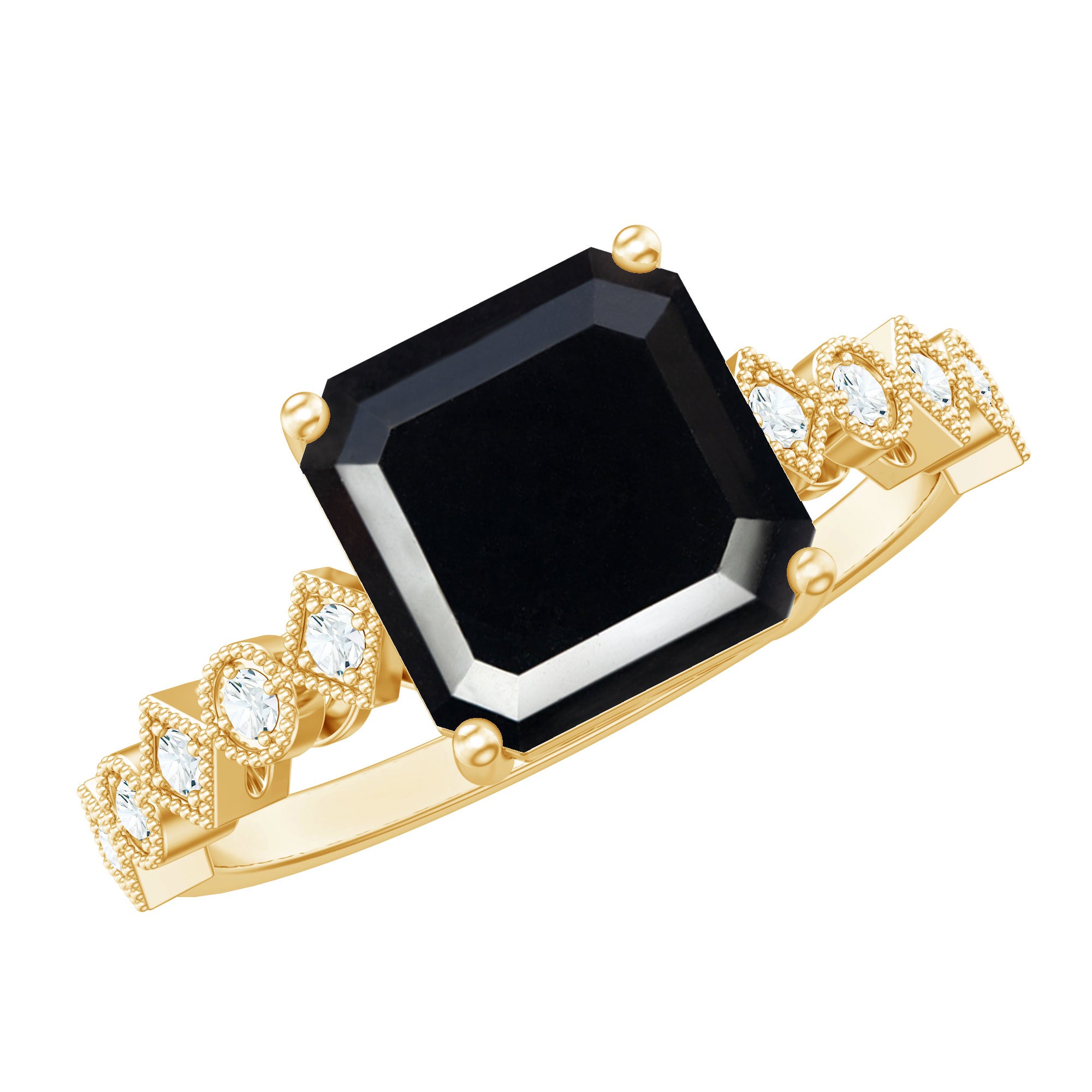 Embrace eternity with a ring that eloquently expresses its brilliance and sophisticated design. This Black Onyx Engagement Ring embodies the ideal harmony of passionate love and enduring elegance, making it an exceptional selection for your most treasured occasion. At the heart of this enchanting piece lies an 8 MM Asscher cut Black Onyx, meticulously held in a prong setting. Enhancing the design further, the sleek band features horizontally arranged round shape Diamond side stones. These artfully positioned accents introduce a modern flair and delicate sparkle, perfectly enhancing the center stone while imparting a distinctive, contemporary essence to the Solitaire Engagement Ring. Whether for an engagement, a significant anniversary, or a momentous celebration of love, this 3 Carat Onyx Ring is crafted to symbolize strength, brilliance, and the journey of two souls uniting as one. Available in a broad spectrum of US sizes, this Asscher Cut Engagement Ring guarantees a perfect fit, designed to feel just right for your special day. Every angle, every glimmer, and every detail is meticulously designed to create a piece that serves as a lasting emblem of your love story, your commitment, and the bright future that lies ahead. Allow your devotion to radiate with a ring that is destined to be cherished for eternity.