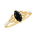 Celebrate strong and lasting love with this classy Black Onyx Engagement Ring, designed with deep meaning and timeless style. At the center sits a marquise shaped black onyx, measuring 4X8 MM, held securely in prong setting. On both sides of the center stone, Celtic knot details add a special meaning. These endless loops are a symbol of love, loyalty, and connection that never fades. They represent the bond between two people, strong and unbroken. To add a sparkle, the band is accented with small round diamonds of HI-SI quality. These diamonds bring a nice contrast to the deep black onyx, creating a design that feels balanced. This Celtic Engagement Ring is crafted with care, using high quality metal and AAA quality black onyx. It is not just a piece of jewelry, it is a symbol of strength, unity, and endless love. Simple enough for everyday wear but detailed enough to feel truly special, this Black Onyx and Diamond Ring is a perfect mix of beauty and love. A lovely choice for anyone who values tradition, symbolism, and elegant design.