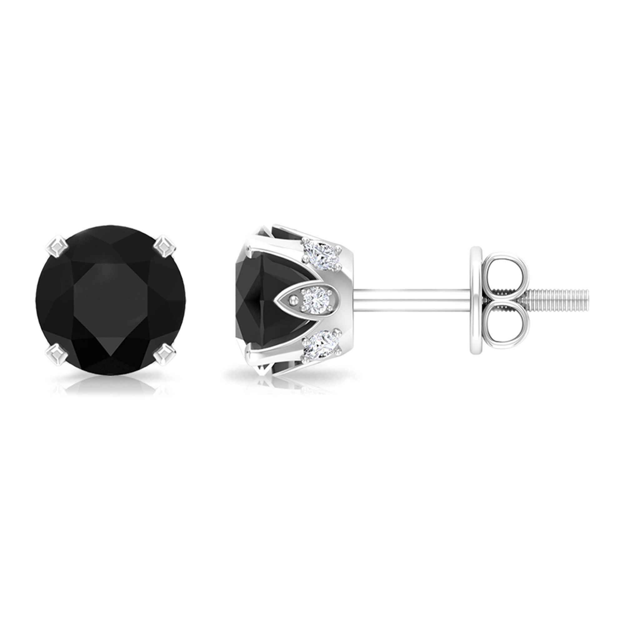 Elevate your everyday elegance with these Black Onyx Stud Earrings, a perfect blend of bold sophistication and subtle sparkle. The deep 7 mm Round Black Onyx stones create a striking look, while the Diamond stones reveal themselves from different angles, adding an enchanting flash of brilliance that catches the light with every movement. Designed with a Secure Screw Back Closure, these Black Onyx Diamond Earrings stay comfortably in place, making them ideal for daily wear or special occasions without worry. Their classic yet modern design allows them to complement any outfit, from casual chic to evening glam, effortlessly enhancing your style with understated luxury. Packaged in a signature jewelry box, these December Birthstone Earrings are ready to gift, making a memorable surprise for someone special or a stylish treat for yourself. With these Black Onyx Earrings, every outfit gains a subtle, unforgettable sparkle that leaves a lasting impression.