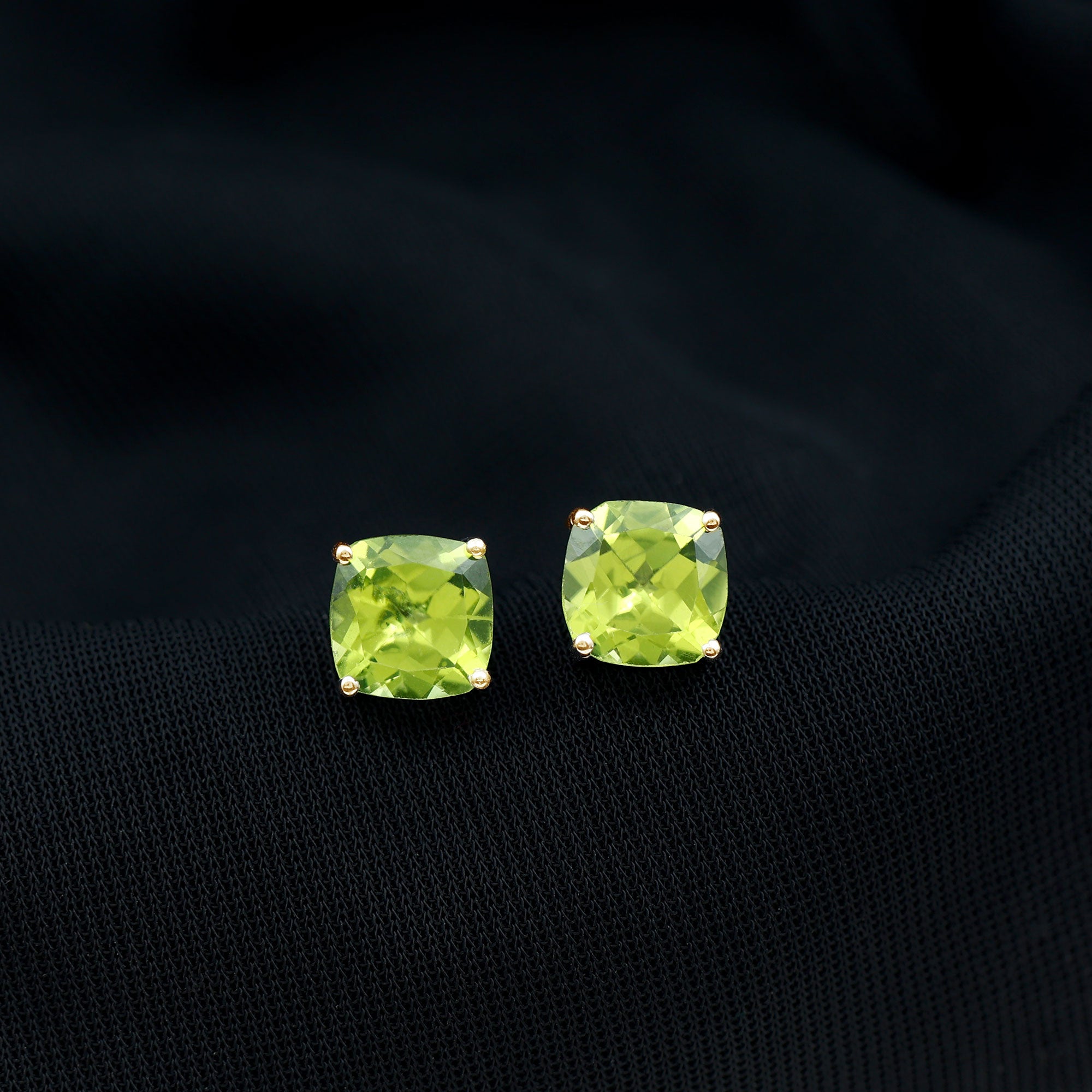 Genuine Cushion Cut Peridot Solitaire Stud Earrings With Certificate