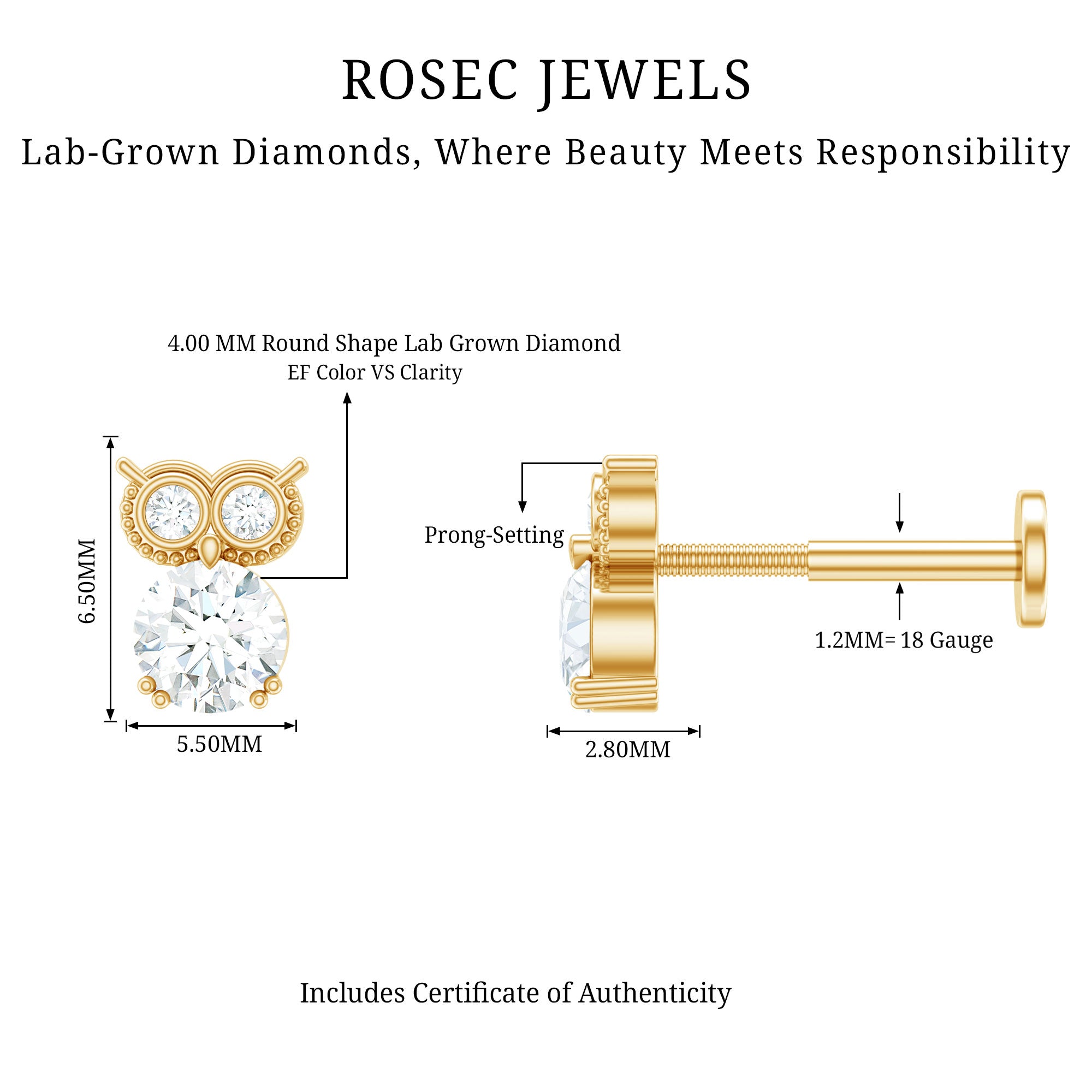 - You can style this Diamond Owl Earring on your multiple piercings like Helix, Cartilage, or Upper Lobe Piercing. The Flat Back Closure will keep it secured in place.