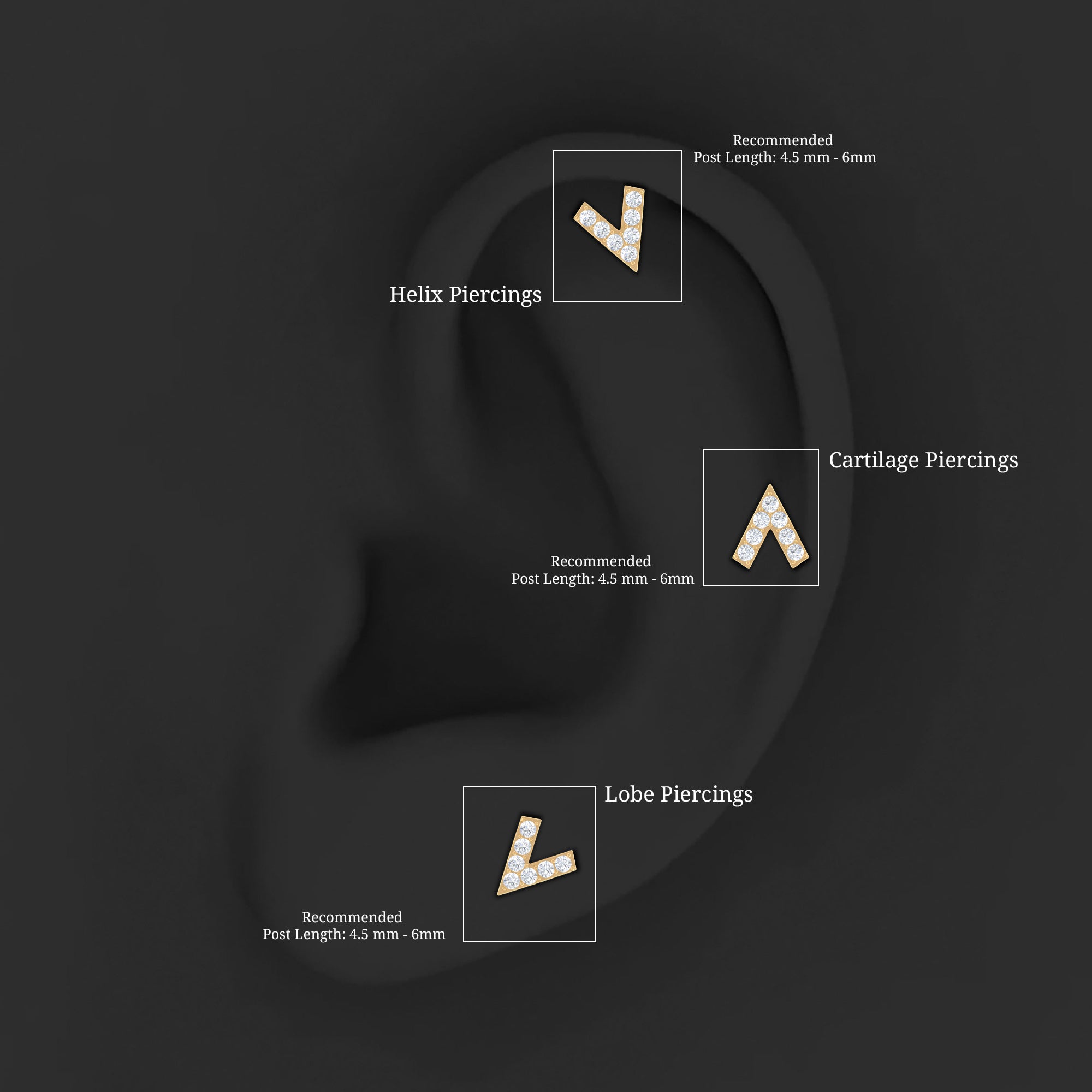 Get your special someone our captivating V Shape Earring, adorned with Round Cut Diamonds on a unique V design, meticulously crafted in opulent Gold. This Tragus Earring is perfect for anyone who loves to try something different and can be worn on their Tragus, Conch, Daith, Helix, or Cartilage Piercings. It features a Flat Back and Ball Screw Back Closure to keep it securely in place. With this Conch Earring, youll stand out from the crowd and make a statement wherever you go. It also makes for a perfect graduation gift for your special girl.