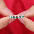 Genuine Emerald and Diamond Half Eternity Ring for Women