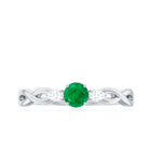 Genuine Emerald and Diamond Promise Ring with Crossover Shank