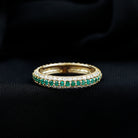 Looking for a ring that truly shows the strength and beauty of love? This Emerald and Diamond Band Ring is a perfect choice. It features a unique design with three rows that catch the eye. The middle row is filled with round cut emerald stones, shining bright with a rich green color. On each side of the emeralds, there are rows of sparkling diamonds that add extra shine and elegance. Together, these stones create a full eternity band that looks stunning from every angle. This Pave Wedding Band is not just beautiful but also full of meaning. It stands for a love that lasts forever and a bond that grows stronger with time. The combination of AAA quality emeralds and HI-SI quality diamonds gives the Three Row Eternity Band a magical touch, making it a special piece for any woman who wants to add color and sophistication to her style. The design is elegant yet classic, making it suitable for everyday wear or special occasions. It is a great choice as a wedding band or an anniversary gift, something that will always remind you of your cherished moments together. Made with care to last, this Emerald Wedding Band is a symbol of commitment and beauty. Its sparkling stones and timeless design make it a lovely heirloom to pass down and treasure for years to come.