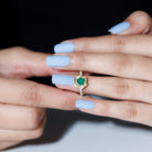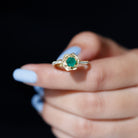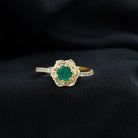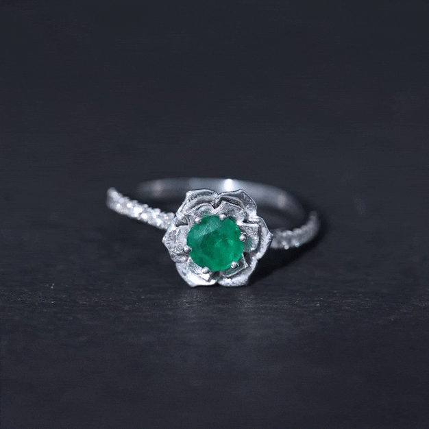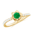 Blooming with the grace of nature’s artistry, this Nature Inspired Engagement Ring captures the essence of love in its purest form. At its center rests a 5 MM round cut emerald, securely held in prong setting. Surrounding the center stone are delicately shaped metal petals, forming a floral design reminiscent of a blossoming rose. On either side of the center, round cut diamonds glimmer softly, adding a hint of sparkle that enhances the vivid color of the emerald. The gently curved shank gives the Rose Engagement Ring a refined and modern silhouette while maintaining a romantic and classic appeal. Crafted with AAA quality emerald and HI-SI quality diamonds, this Emerald Engagement Ring is designed with care and precision to radiate sophistication. This Emerald Flower Ring beautifully symbolizes love, growth, and new beginnings, making it a perfect choice for proposals or meaningful celebrations. Whether worn as a promise of forever or a cherished keepsake, it embodies the timeless connection between nature and devotion. Presented in an elegant jewelry box with a certificate of authenticity, this Emerald and Diamond Engagement Ring is a celebration of romance, grace, and everlasting beauty.
