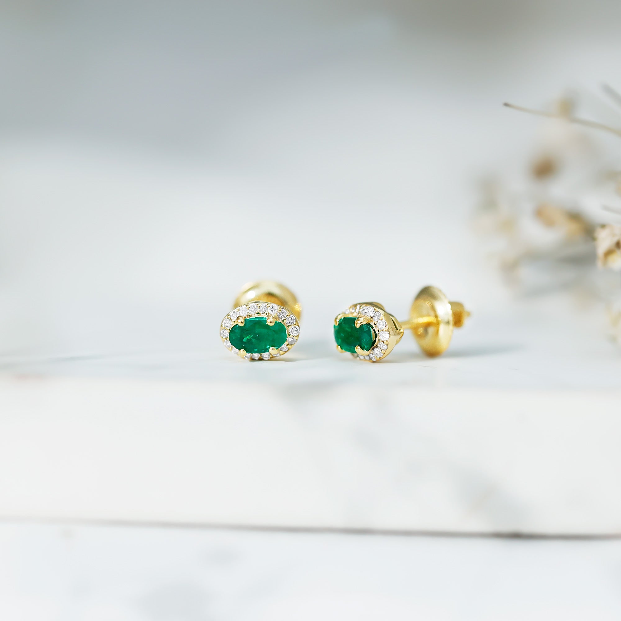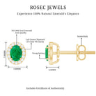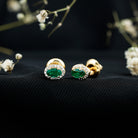 Genuine Emerald Stud Earrings with Diamond Halo