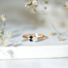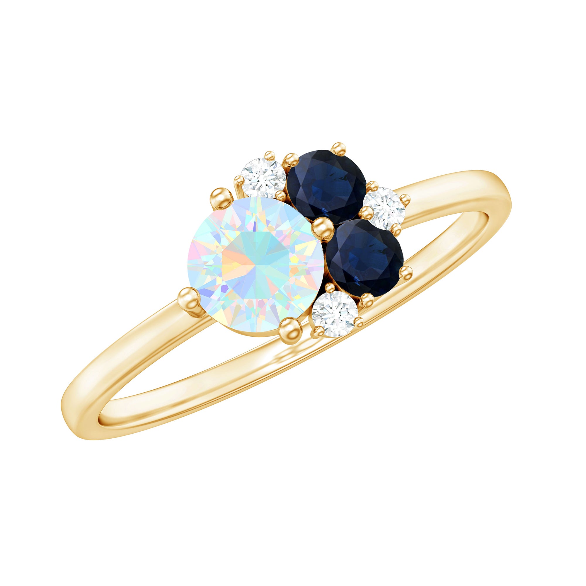 Genuine Ethiopian Opal and Sapphire Cluster Promise Ring with Moissanite