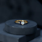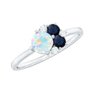 Celebrate a love that is as unique as you are with this Ethiopian Opal Promise Ring, where vibrant color meets timeless elegance. At its center sits a captivating 5 mm Round Shape Ethiopian Opal set in Prong Setting, glowing with an enchanting play of colors. Framing the opal are two stunning Round Shape Blue Sapphire gemstones, adding a pop of rich, royal blue that contrasts beautifully with the iridescent hues of opal. Delicate Moissanite stones add a touch of sparkle, enhancing the brilliance of the cluster and creating a mesmerizing look. This Opal and Sapphire Ring is a perfect balance of bold color and refined glamour, symbolizing a love that is both passionate and enduring. Whether you are marking a commitment, an engagement or a special milestone, this Opal Cluster Ring is sure to make a lasting impression. Presented in a signature jewelry box, this Real Opal Ring is ready to gift and to cherish forever. Available in various sizes for a perfect fit, this Rainbow Opal Ring is a dazzling promise of your eternal love and devotion.