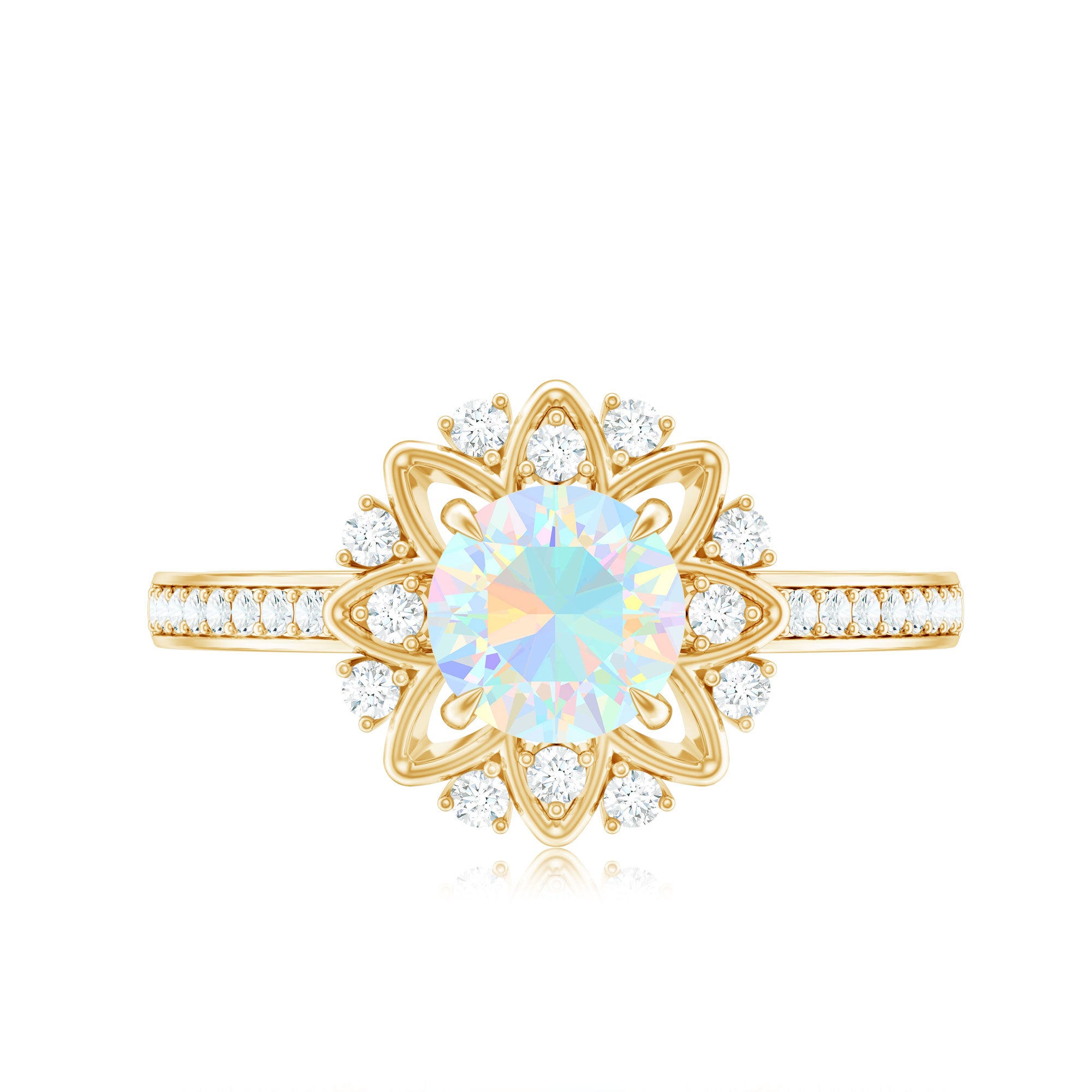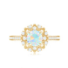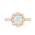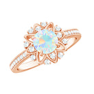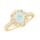 Make a bold yet delicate statement with this Flower Engagement Ring, a breathtaking bloom of beauty and brilliance. At its center lies a 6 mm Round Shape Ethiopian Opal in Claw Setting, glowing with rainbow hue and set within a floral motif. Surrounding the opal, shimmering Diamond petals create a romantic Halo, while the band is sprinkled with dainty Diamond stones that add sparkle from every angle. This Opal Flower Ring is a dream for those who adore whimsical elegance and nature-inspired design. Every detail is crafted to symbolize growth, beauty and eternal love, making this Opal and Diamond Engagement Ring the perfect piece for a love that continues to blossom. Whether you are planning a fairytale proposal or looking for something truly out of the ordinary, this enchanting Floral Engagement Ring comes in a signature jewelry box and is available in a variety of sizes to ensure the perfect fit. Let your forever begin with a ring that captures the magic of nature and the brilliance of your bond.