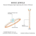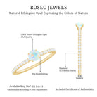 When words are not enough, let this Opal Promise Ring say everything your heart wants to express. At the center of this Commitment Ring glows a captivating 5 mm Round Shape Ethiopian Opal, known for its magical play of color, shifting with every glance like a love that keeps revealing new depths. Flanked by sparkling Diamond side stones, this Proposal Ring balances ethereal beauty with timeless sparkle, creating a look that is both delicate and unforgettable. The shifting hues of opal mirror the journey of love itself, ever-changing, always beautiful and full of light. Whether you are making a heartfelt promise, celebrating a meaningful moment or simply showing how much she means to you, this Opal Diamond Ring is the perfect gesture. Arriving in a beautiful jewelry box and available in a range of sizes, this Ethiopian Opal Ring is ready to gift and impossible to forget.