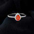 Genuine Fire Opal Teardrop Ring with Diamond Halo