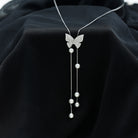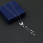Thoughtfully designed to capture both elegance and whimsy, this Lariat Necklace is a delicate statement piece that elevates any outfit. At the heart of the design, a charming Butterfly adorned with sparkling Zircon stones sits gracefully at the Y, from which lustrous Freshwater Pearls cascade in a soft, elegant flow. Crafted in 925 sterling silver, the necklace combines timeless sophistication with a touch of playful charm, making it perfect for both special occasions and everyday wear. The lariat style adds a modern twist, allowing the White Pearls to dangle freely and move beautifully with every gesture, catching the light from every angle. Handcrafted with perfection, this Butterfly Necklace sits effortlessly on the neckline, drawing attention in a subtle way. Delivered in a stylish jewelry box, this Pearl Necklace makes an exquisite gift for birthdays, anniversaries or to surprise someone special. Whether layered with other necklaces or worn solo as a standout piece, this Layering Necklace blends beauty with understated luxury. This Real Pearl Necklace is a timeless addition to any jewelry collection that will be treasured for years to come.