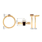 Genuine Garnet Diamond Emerald Cut Engagement Ring with Wedding Band