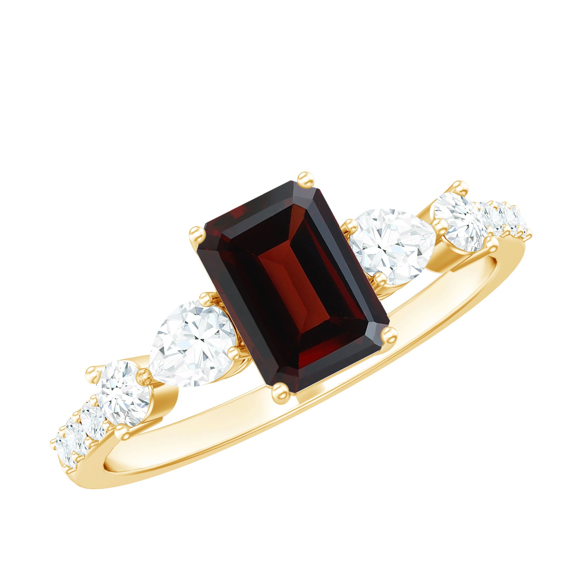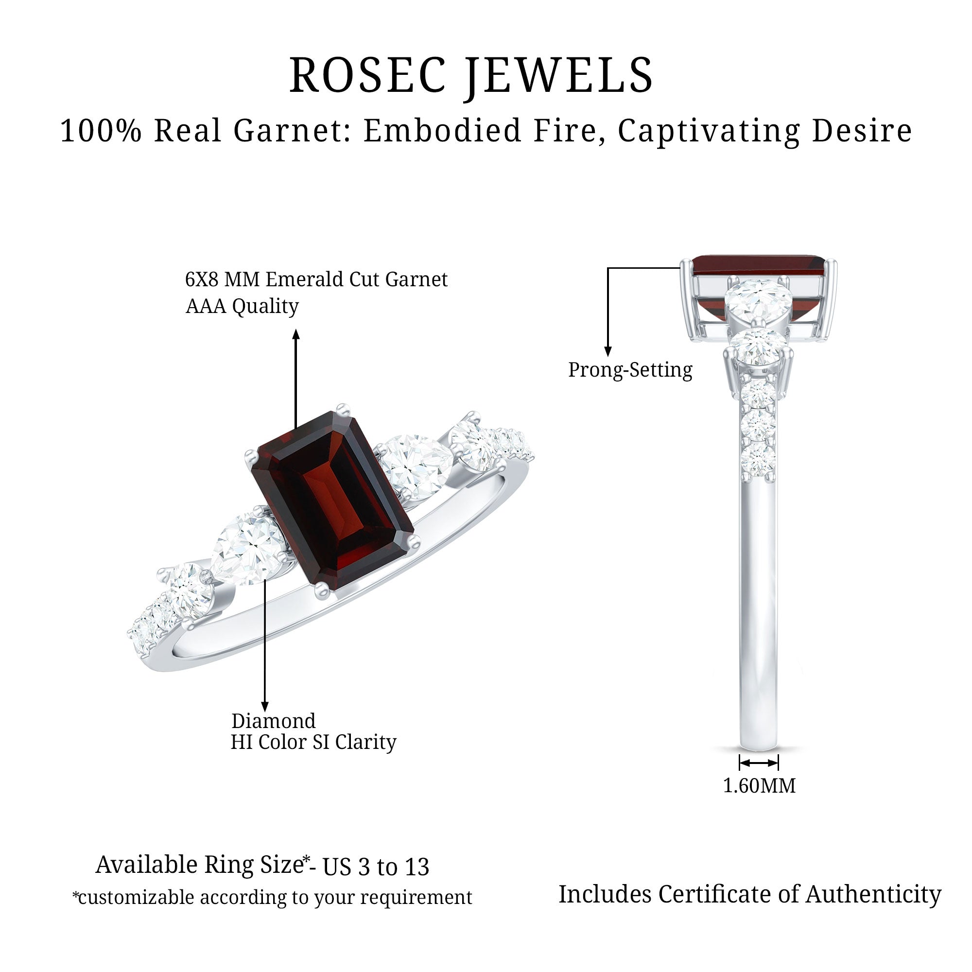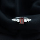 Genuine Garnet Emerald Cut Engagement Ring with Diamond Side Stones