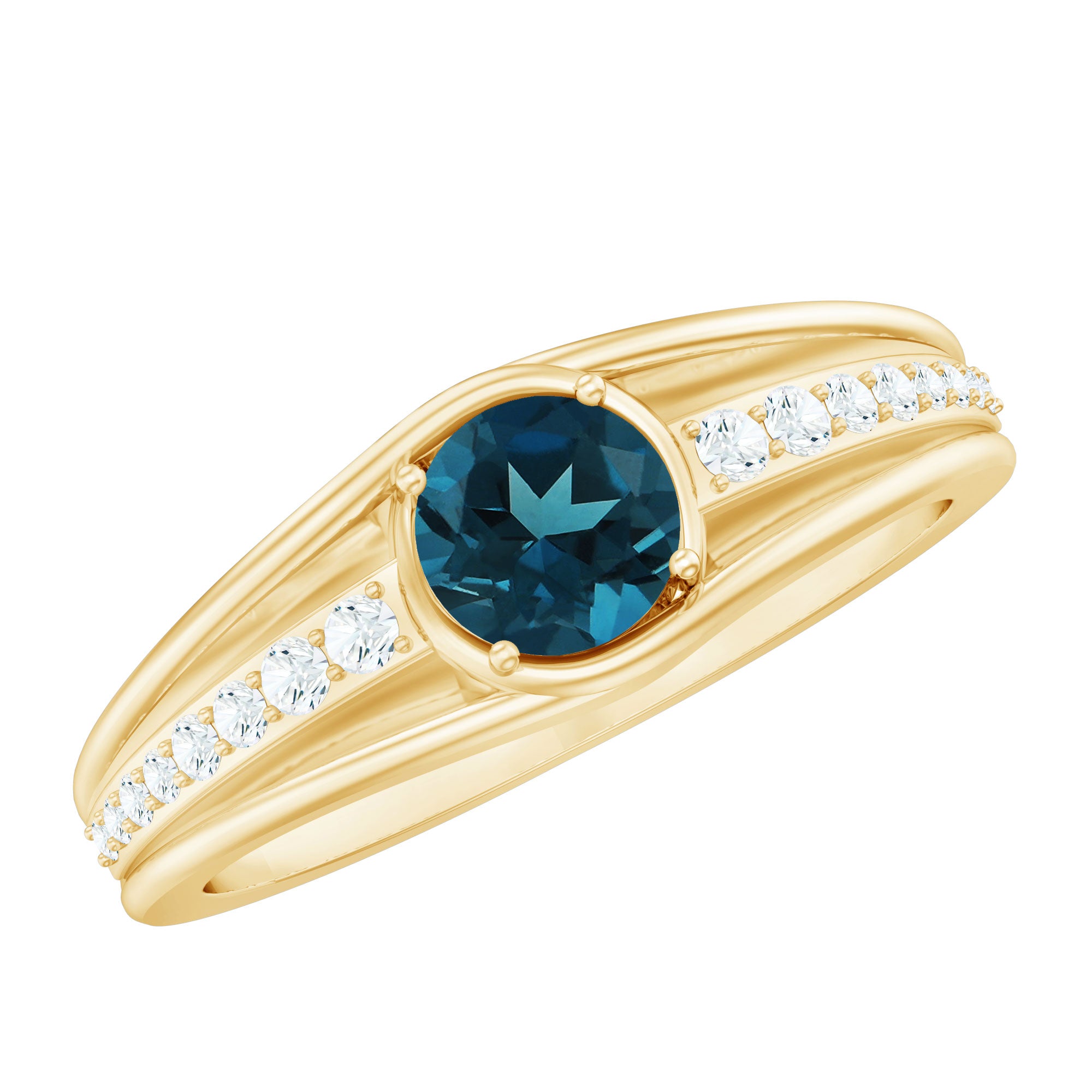 Looking for a ring that is simple, stylish, and full of meaning? This London Blue Topaz Engagement Ring checks all the boxes. It is embellished with a 5 MM round cut London Blue Topaz, held in secure prong setting. The topaz is the star of the show, but the small round diamonds on the sides add that extra shine to complete the look. Whether you are buying it for yourself or for someone special, this Blue Topaz and Diamond Ring is easy to wear every day and still feels elegant enough for important occasions. It is that kind of piece that never goes out of style because of its simple, pretty, and meaningful design. The combination of the blue topaz and diamonds gives it a contrasting feel that is perfect for someone who appreciates beauty in the little things. Crafted with care using AAA quality London Blue Topaz and HI-SI quality diamonds, this Engagement Ring with Side Stones is built to last. It is available in a wide range of sizes, so you will find the perfect fit. Plus, it comes with a certificate of authenticity for the gemstone, so you can feel confident about your choice.