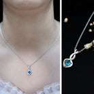 Genuine London Blue Topaz Infinity Heart Necklace with Diamond
