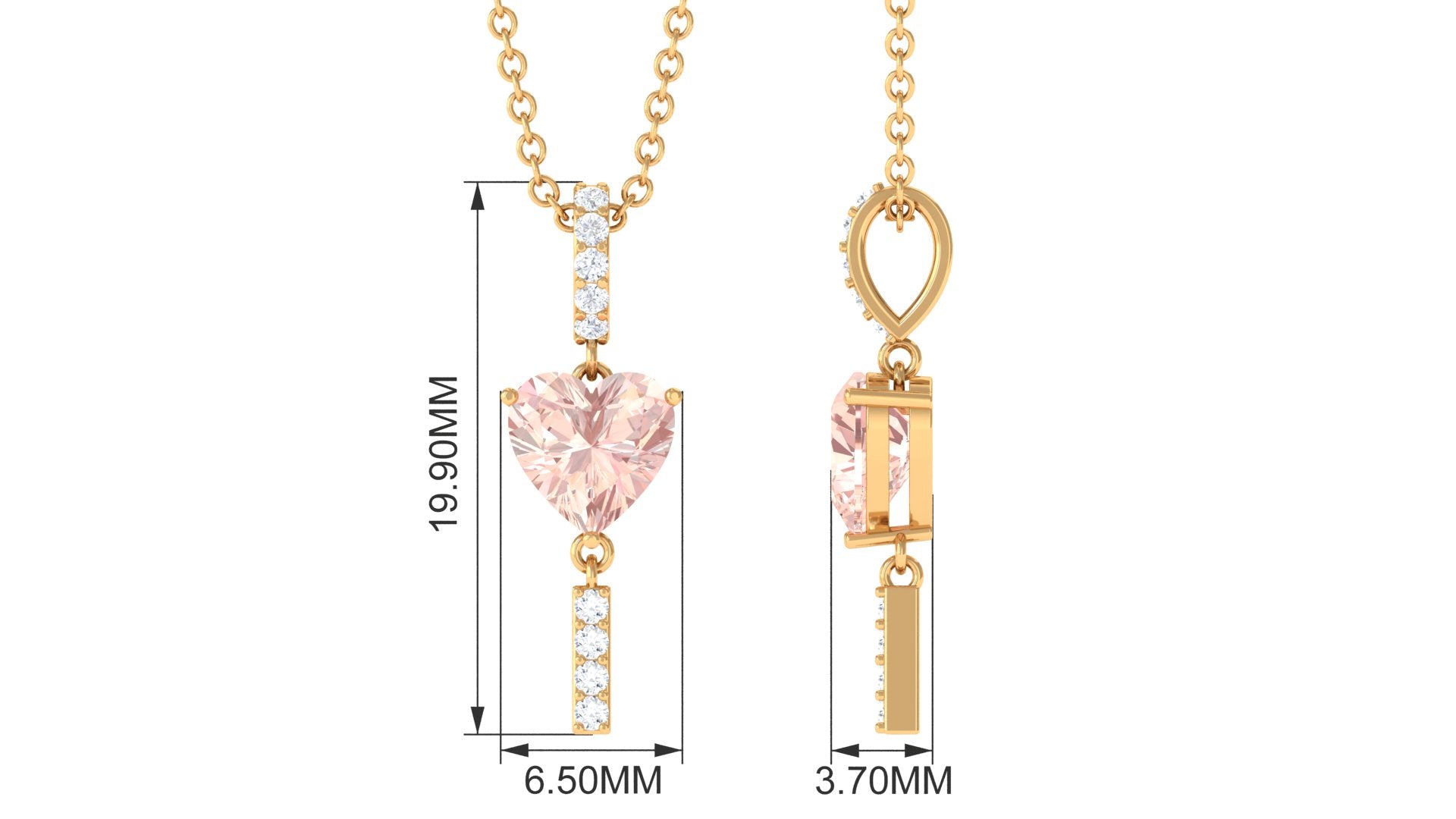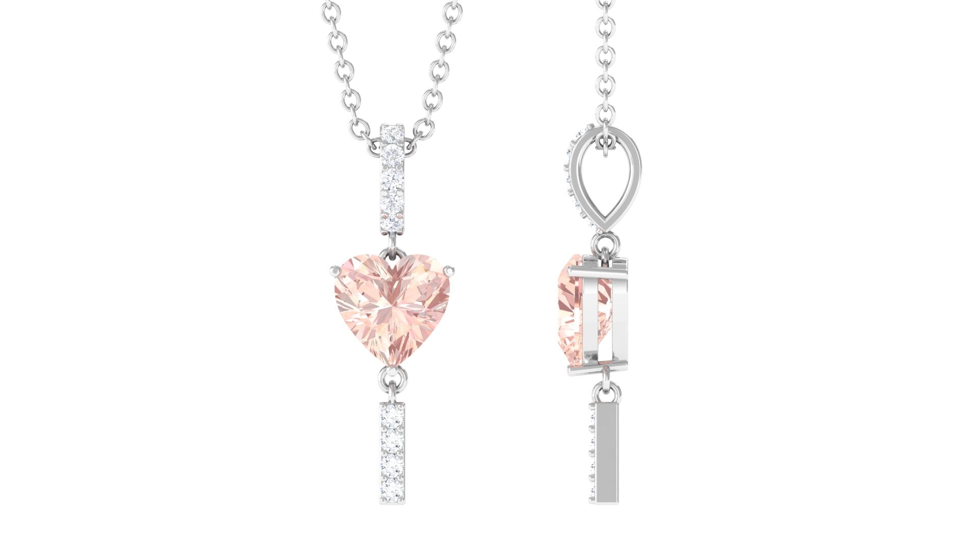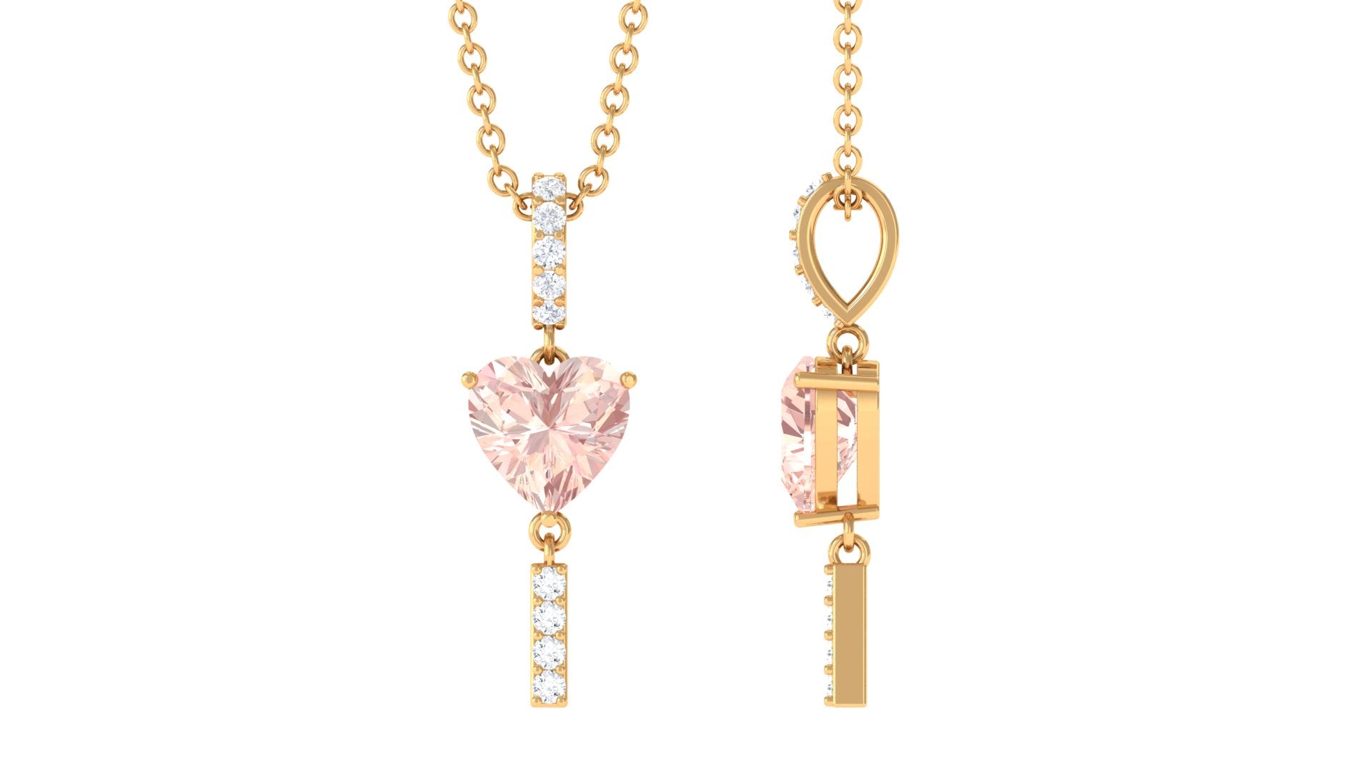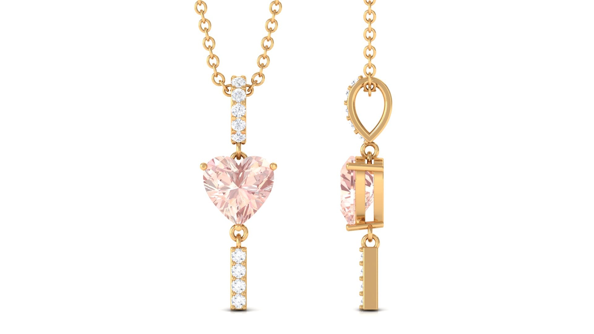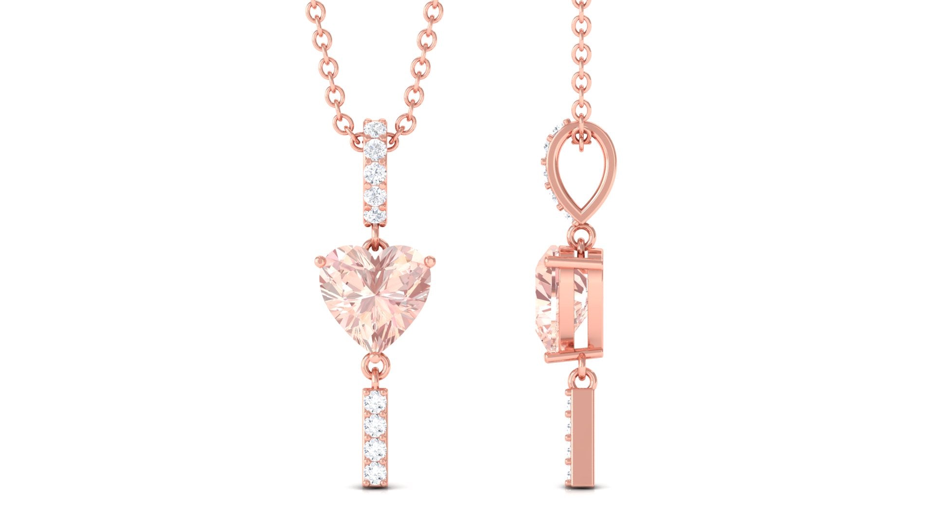 Complement her attire with this Heart Drop Pendant Necklace embellished with Heart Shape Morganite and dainty Round Cut Diamonds. This Heart Drop Pendant is composed of Solid Gold and will enchant everyones attention with its charm. Present this Morganite Pendant to your special person.