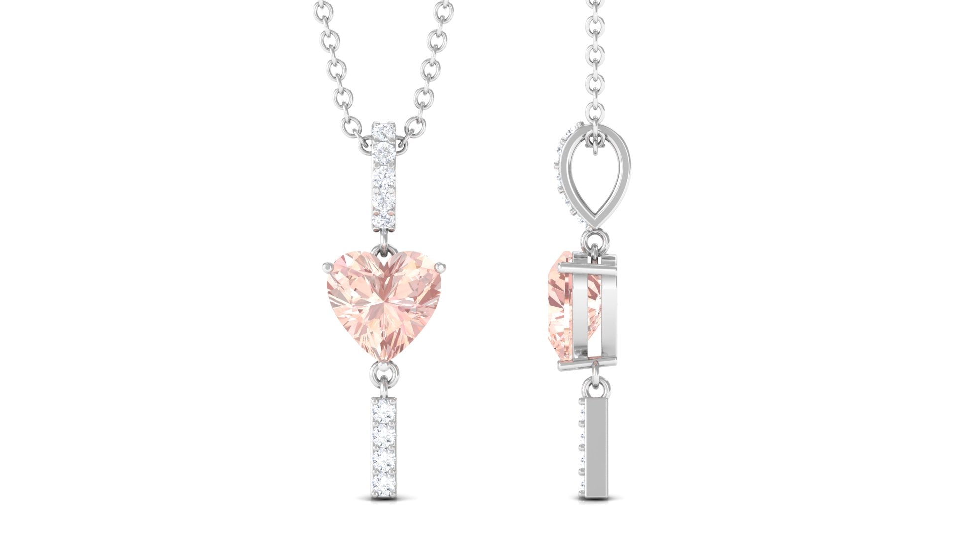 Genuine Morganite Heart Drop Pendant Necklace with Diamond