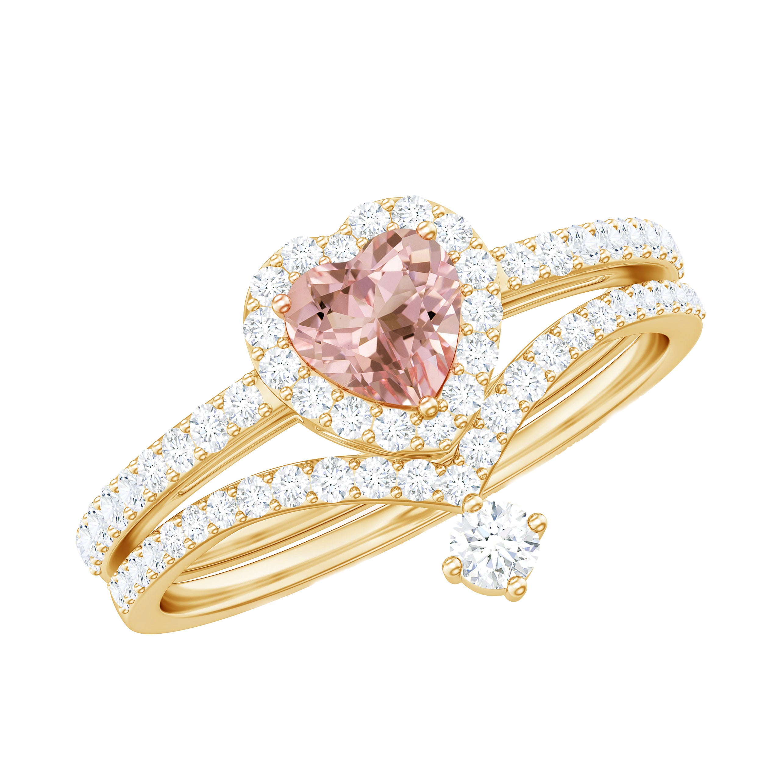 Embrace romance with this Heart Shape Ring Set featuring a 6 MM Heart Shape Morganite gemstone, complemented by dazzling Diamond stones. This set represents the beauty of affection and promises a lifetime of cherished moments. An exquisite choice for engagements, anniversaries, or any celebration of love that leaves a lasting impression.